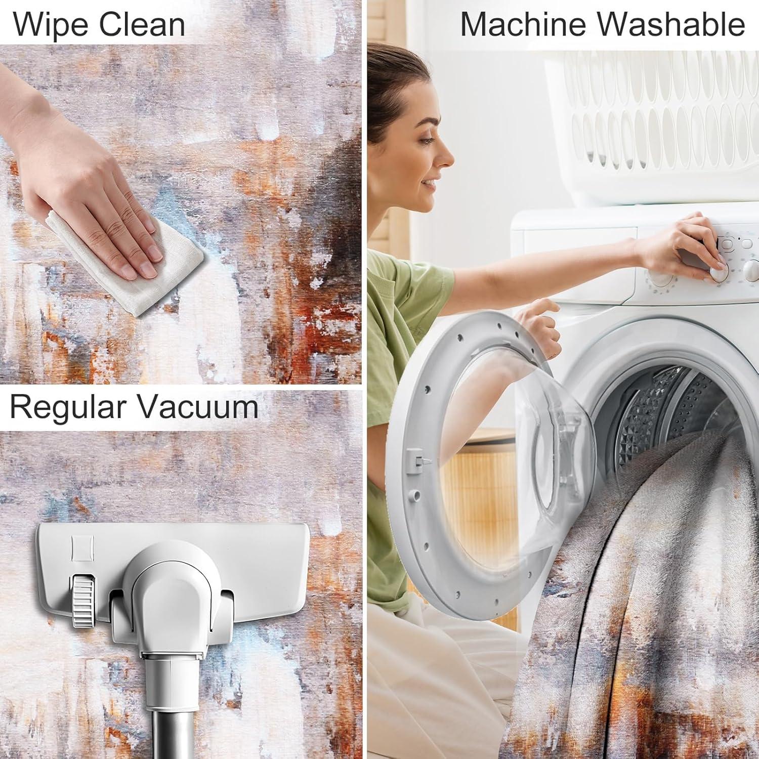 - Machine Washable: The short pile design of this washable rug is easy to maintain using an upright vacuum or robotic vacuum cleaner. The area rug is also machine-washable for fast and hassle-free cleaning. After washing, a low-temperature iron can help to keep the living room carpet’s surface flat and smooth.