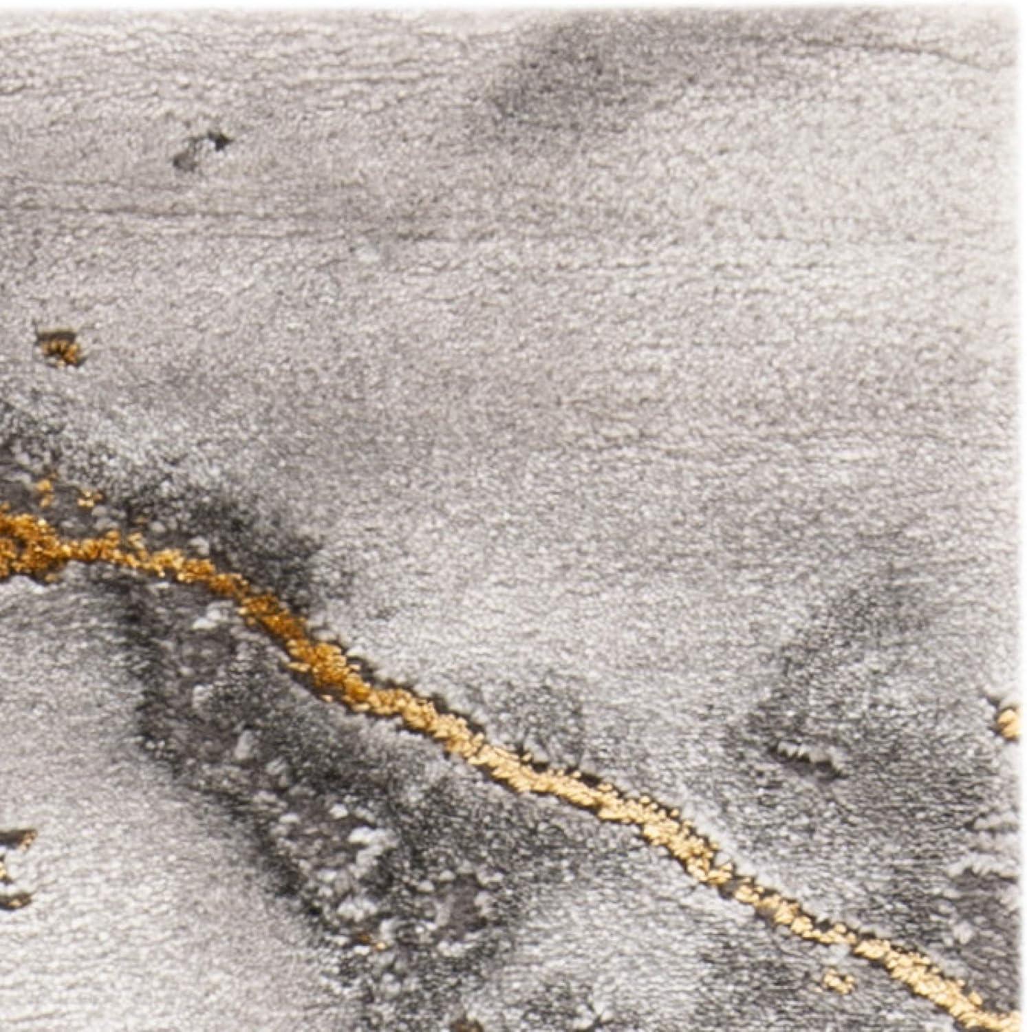 the modern abstract design of this rug presents a striking blend of grey and gold tones that infuse any space with contemporary flair while maintaining a subtle elegance. Its greyscale foundation acts as the perfect neutral backdrop, allowing the gold accents to shine without overpowering the room’s decor. We appreciate how the abstract pattern creates visual movement, making it an ideal centerpiece for areas like the living room or bedroom where style meets comfort. This color palette complements a wide variety of furniture and wall colors, establishing harmony in our home habitat without demanding too much attention, yet never fading into the background.