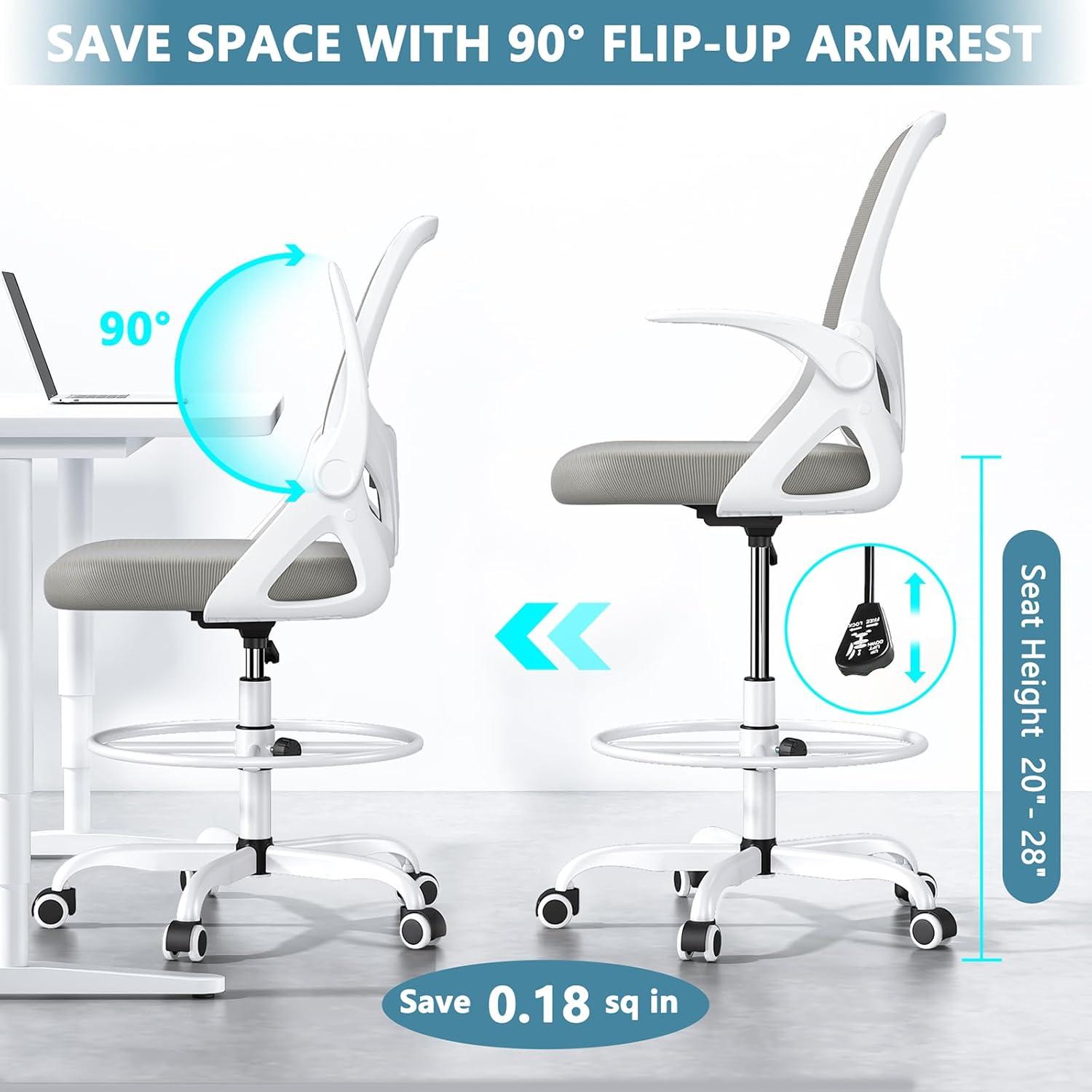 The flip-up‍ arms on this‌ drafting chair significantly enhance its versatility, making movement around your workspace⁣ smoother and more comfortable. ​When flipped up, ​the arms sit completely ⁤out of the way, allowing us to slide closer to the desk ​or‍ switch between tasks without any restriction. This feature is particularly useful for those who work in ​tight spaces or frequently shift‌ positions, enabling effortless transitions between sitting and standing or reaching different areas. The 90° flip-up ​capability is sturdy yet easy to operate, adding to ⁣the overall flexibility without sacrificing support when the arms are down.