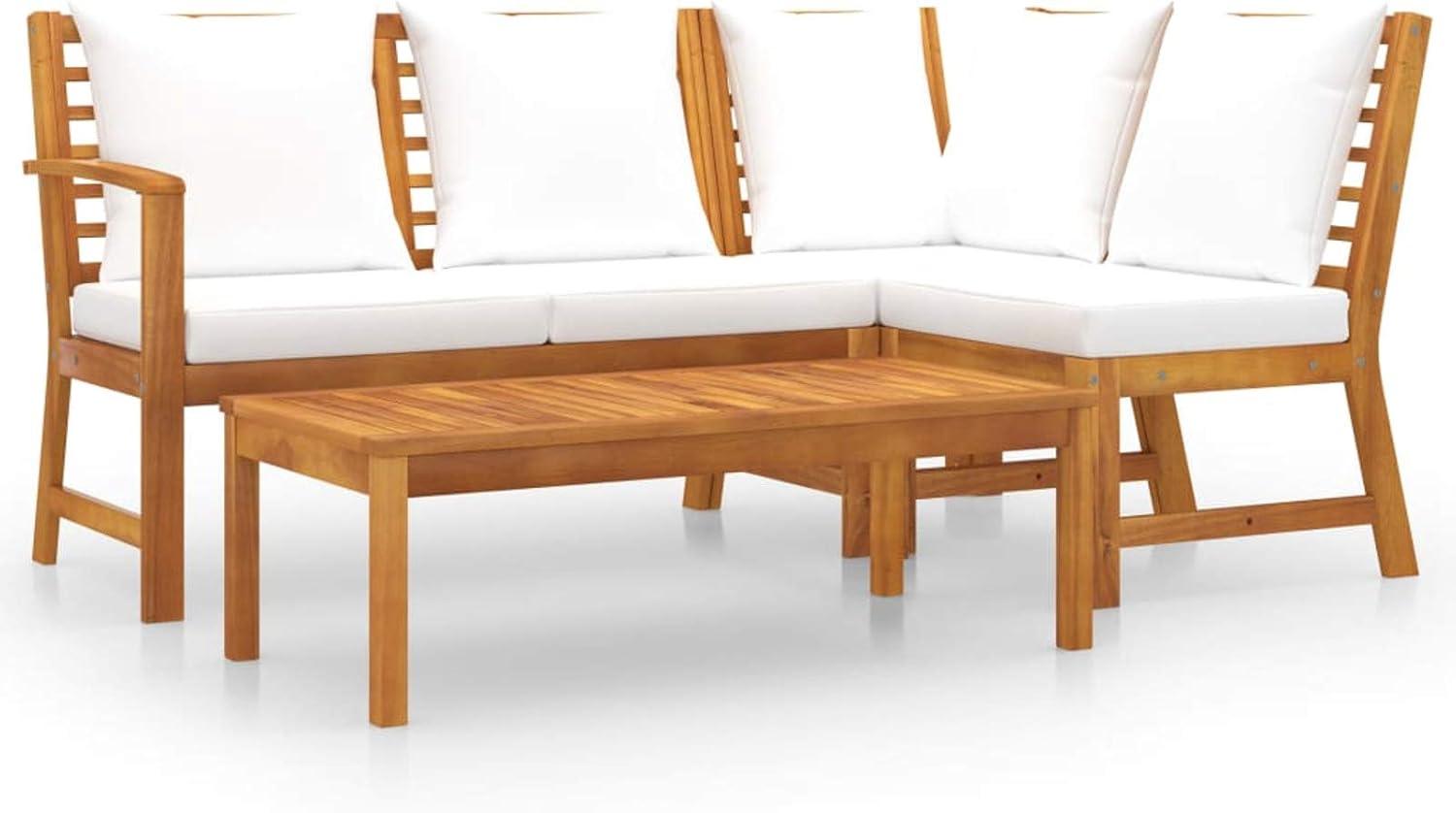 Solid acacia wood frame with oil finish offers impressive durability | Cream cushions, while stylish, may show dirt and stains more easily |