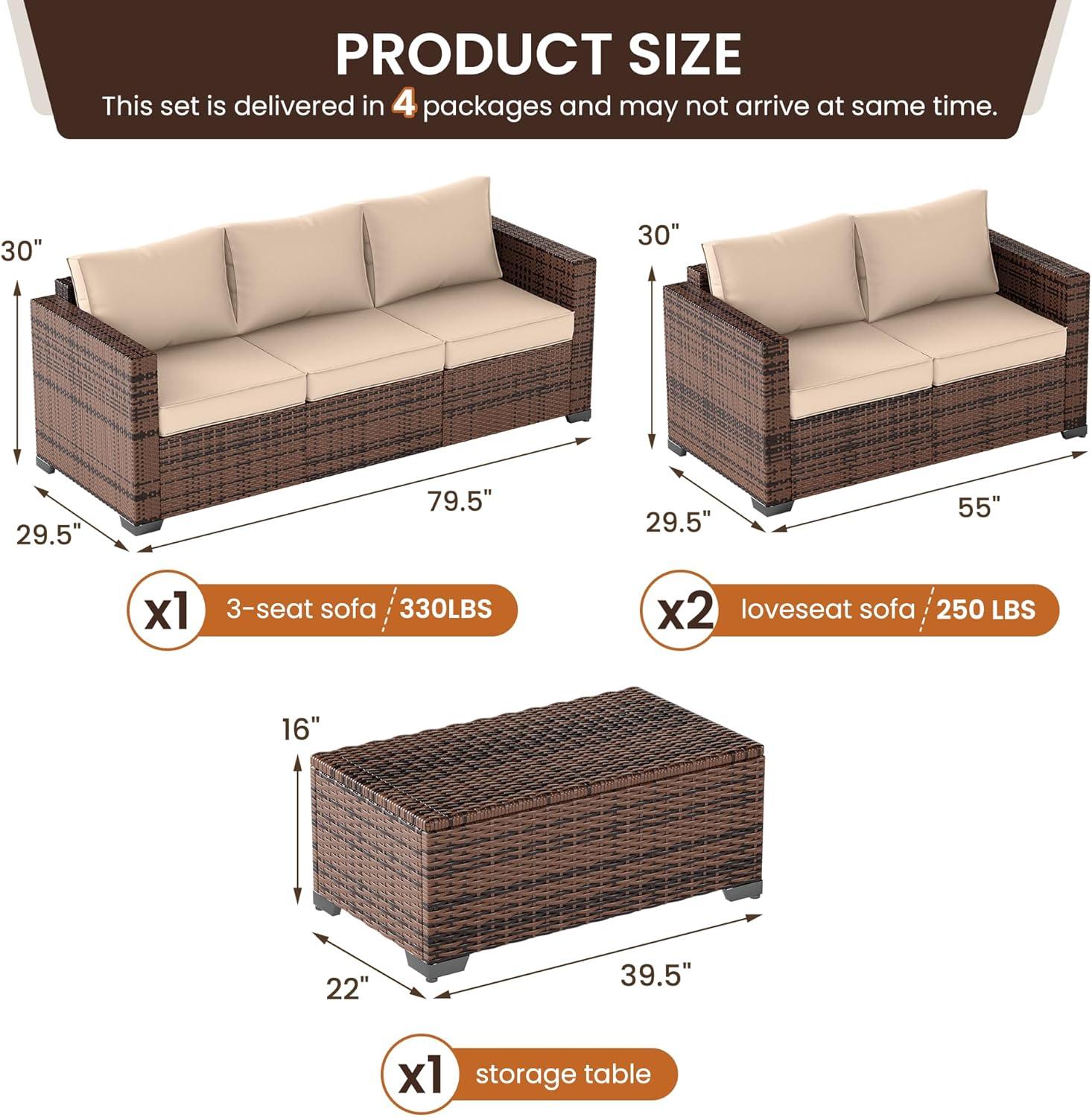 Upon unpacking the set, the first thing that stands out is the generous wide armrests which not only add to the aesthetic appeal but also enhance comfort during long conversations or relaxing afternoons. Crafted with a durable wicker design, the furniture gives off a sleek, modern vibe that fits seamlessly into various outdoor settings-whether it’s the garden, poolside, or backyard. The khaki color offers a neutral yet warm tone that complements natural surroundings, making the set a versatile addition to our outdoor living space. It arrived well-packaged and the assembly was straightforward,which is a definate plus for anyone eager to set it up quickly.