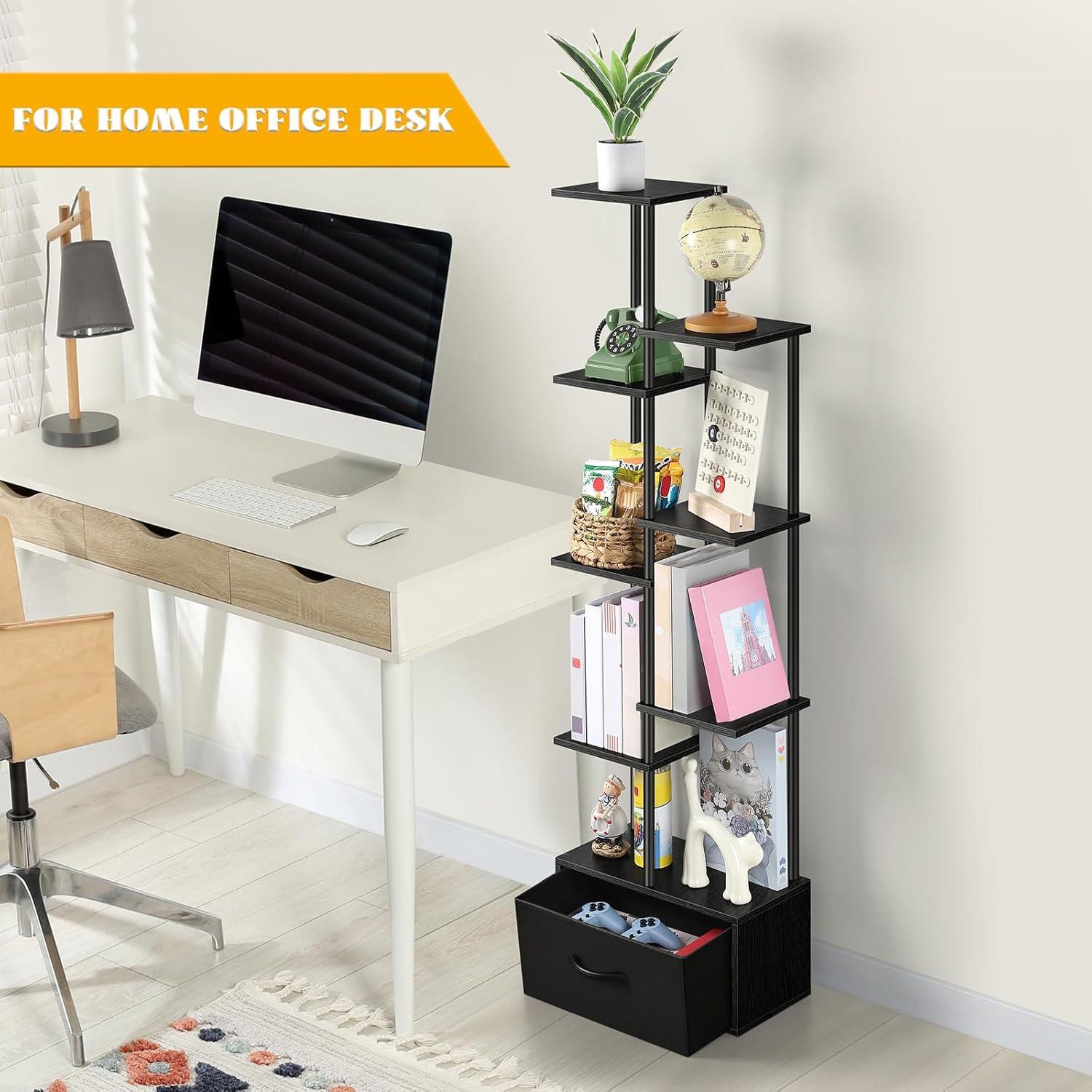 After spending time with this bookshelf, we appreciate how it blends practicality and style in a compact, vertical design perfect for smaller spaces. Its 7-tier layout offers generous storage capacity, ideal for books, decor, plants, and other essentials, while the removable fabric drawer adds a soft touch of organization for smaller items. The sturdy wood and metal frame inspire confidence in its durability, further enhanced by the anti-tip feature that ensures safety in busy households. Assembly is straightforward with clear instructions and included tools,so you can have it set up in about an hour without much hassle.