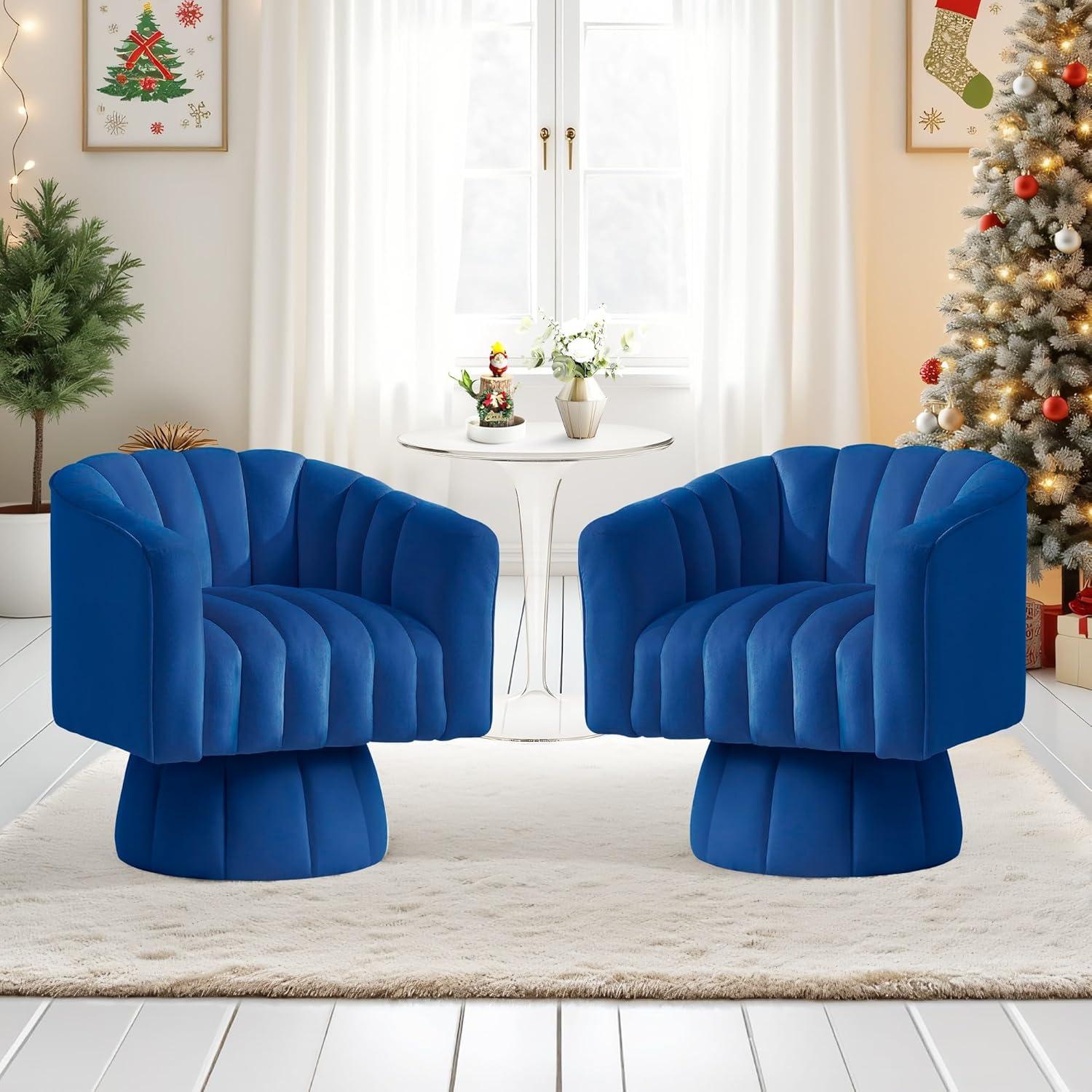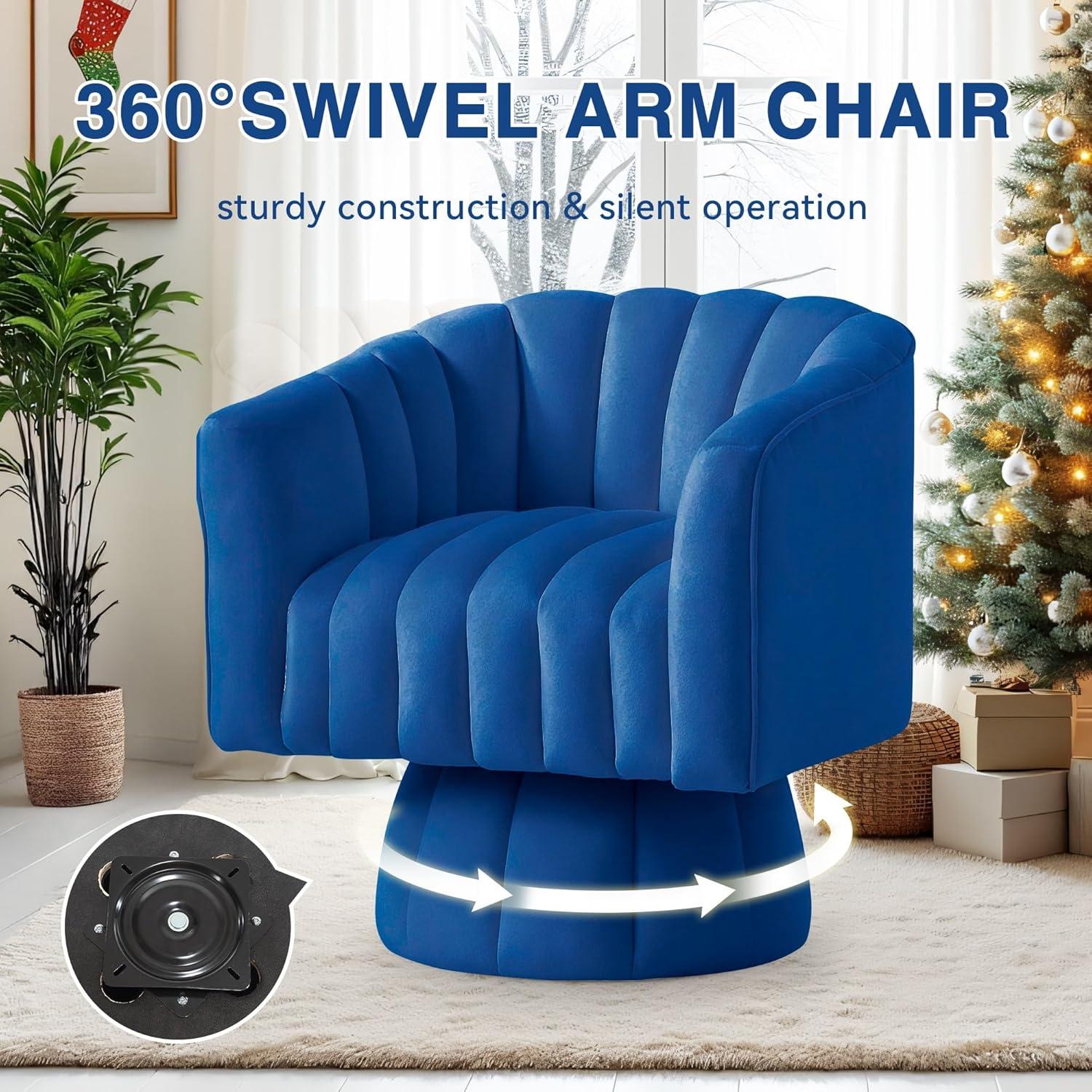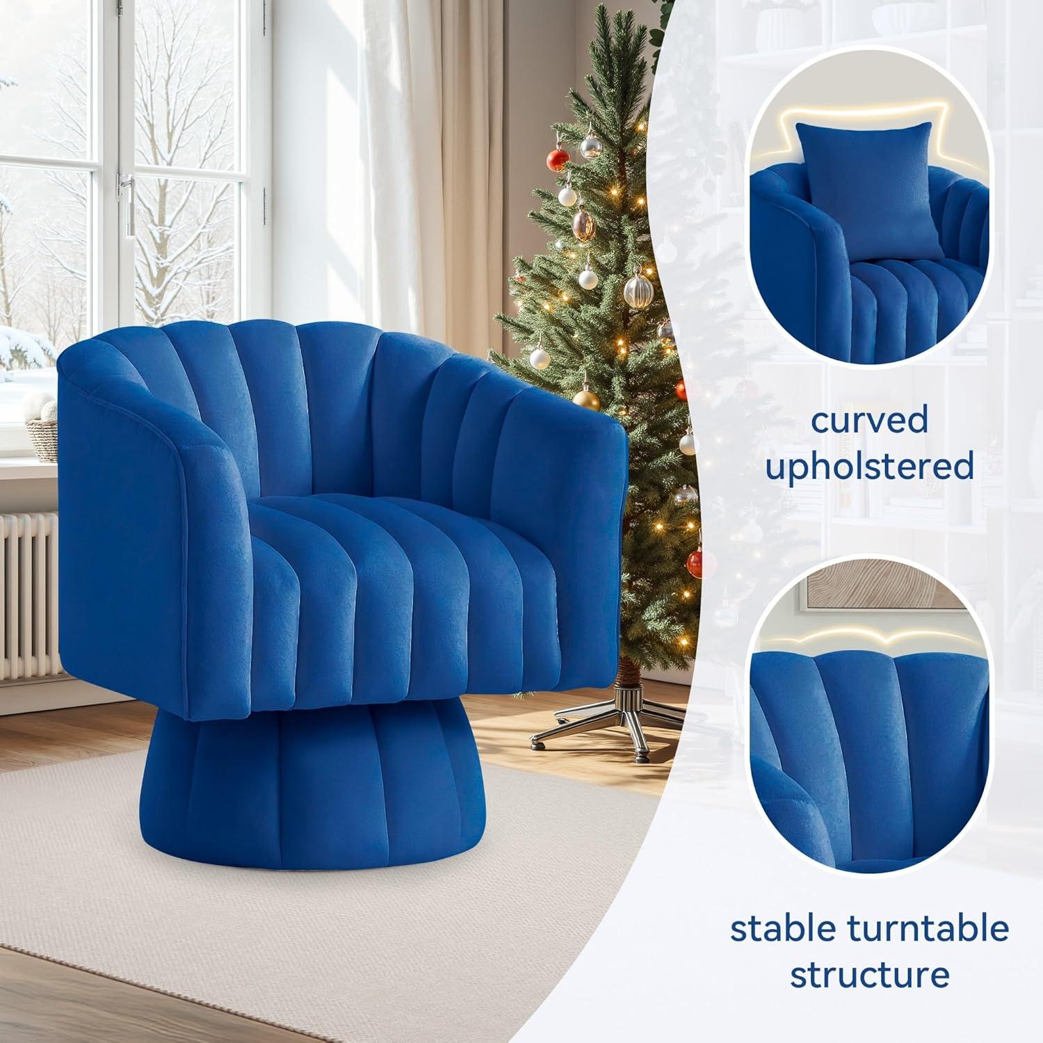 Combining classic⁢ mid-century vibes with ⁣modern⁤ versatility, this accent chair immediately impresses⁢ with its rich velvet‌ upholstery ​and‌ smooth 360-degree⁤ swivel feature. The deep blue fabric ​offers a luxurious feel that invites you to sit ⁣and stay awhile, while the barrel-shaped design, coupled with⁤ wide, rounded ​arms, creates a cozy cocoon of relaxation. ‍The chair’s ⁢ergonomic wraparound backrest and ⁢high-density cushioning provide excellent support and comfort,making it a perfect spot ⁣for unwinding after a busy day. Its aesthetic seamlessly blends with various décor styles, whether placed in a living room, lounge, or bedroom corner, adding both‌ function and sophistication ⁤to your space.