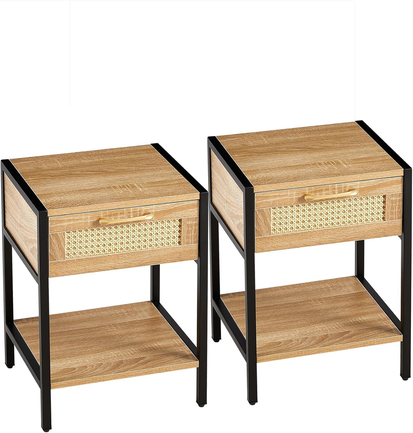 Our living spaces and bedrooms demand furniture that complements both style and functionality, and these end tables deliver precisely that balance. The elegant rattan weaving offers a natural texture that breathes warmth and charm into any room, while the smooth sliding drawer provides convenient storage without compromising the sleek silhouette.Whether positioned beside a sofa to hold a cup of coffee and a book, or flanking the bed to store nighttime essentials, their adaptability fits seamlessly into varied decors. Plus, the sturdy metal legs and adjustable feet ensure consistent stability, even on uneven floors, making these tables not only attractive but highly practical.