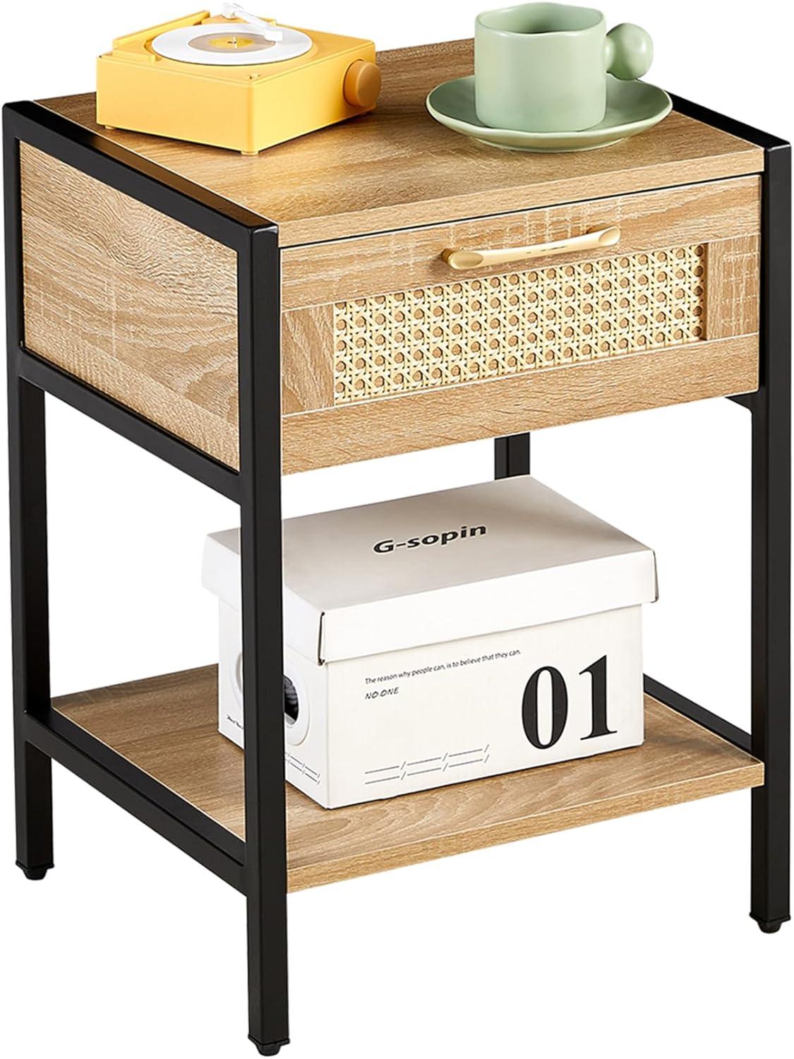 The integration of metal legs complements the natural rattan beautifully, balancing rustic warmth with modern industrial touches. What stood out to us was the way the adjustable PVC feet ensure that the tables remain stable on different flooring types, whether hardwood, tile, or carpet. Additionally, the drawer, seamlessly wrapped in matching rattan, glides open effortlessly on smooth tracks-combining practicality with style. The surface is also remarkably easy to maintain; a quick wipe with a damp cloth restores its fresh appearance, making these tables both beautiful and user-friendly.