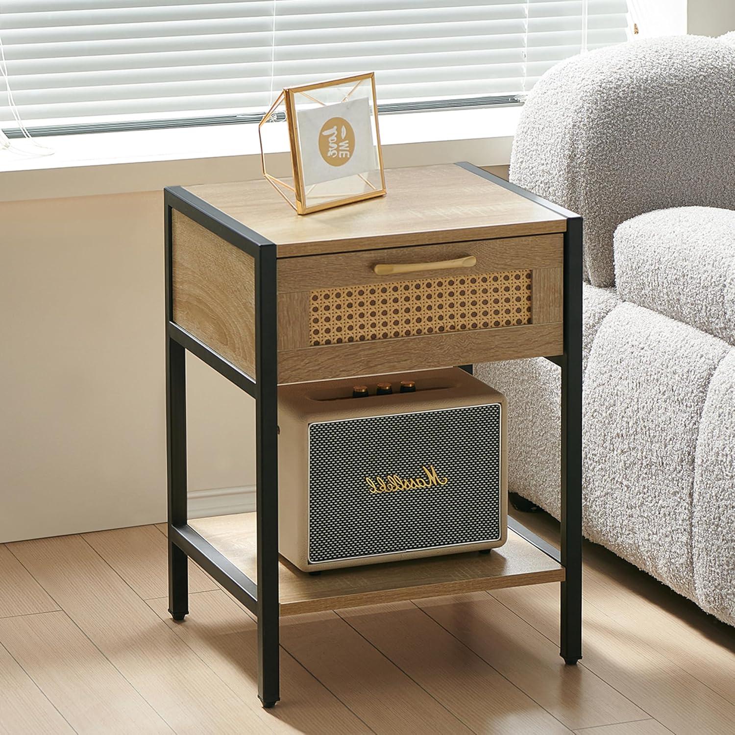 The spacious drawer proves to be an excellent feature for everyday storage, seamlessly blending practicality with style.Its smooth sliding mechanism makes accessing items effortless, whether it’s to store bedside essentials, remote controls, or small living room clutter. The rattan-woven front adds a unique texture, maintaining a sleek and modern appearance without compromising on storage capacity.we found it roomy enough for various needs, yet compact enough to keep the overall design minimal and tidy.