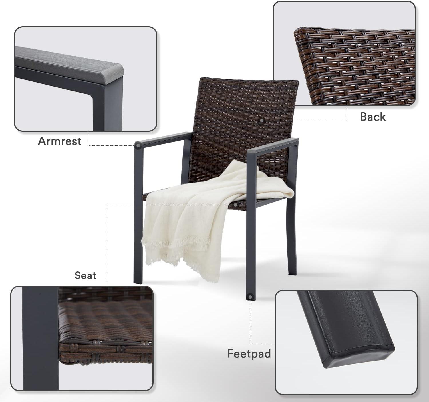 durability and style merge seamlessly in this set, crafted with a sturdy powder-coated metal frame that confidently stands up to sun, rain, and wind. The weather-resistant finish provides reliable protection against corrosion and fading, ensuring the chairs maintain their sleek dark grey appearance even after extended outdoor exposure. The hand-woven PE rattan not only adds a natural aesthetic with its smooth surface but also offers remarkable elasticity and easy maintenance. This combination means we can truly leave the chairs outside without worrying about damage or frequent upkeep.