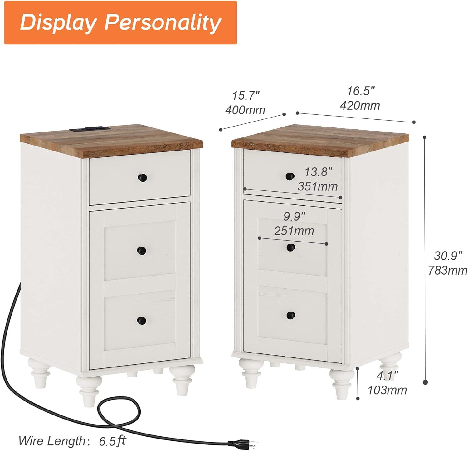 The ​set offers a sleek⁣ and modern design that effortlessly blends with various‍ bedroom styles, thanks to its clean white ​finish and⁢ charming off-white⁢ distressed wood top. The distinctive round gourd⁢ legs add a subtle touch ‌of elegance and mid-century character, making these nightstands‍ an eye-catching yet versatile addition to any space. Thoughtfully crafted with both aesthetics and function in ​mind, the pieces serve equally ‌well as bedside tables or living room side tables, providing adaptability without compromising on style.