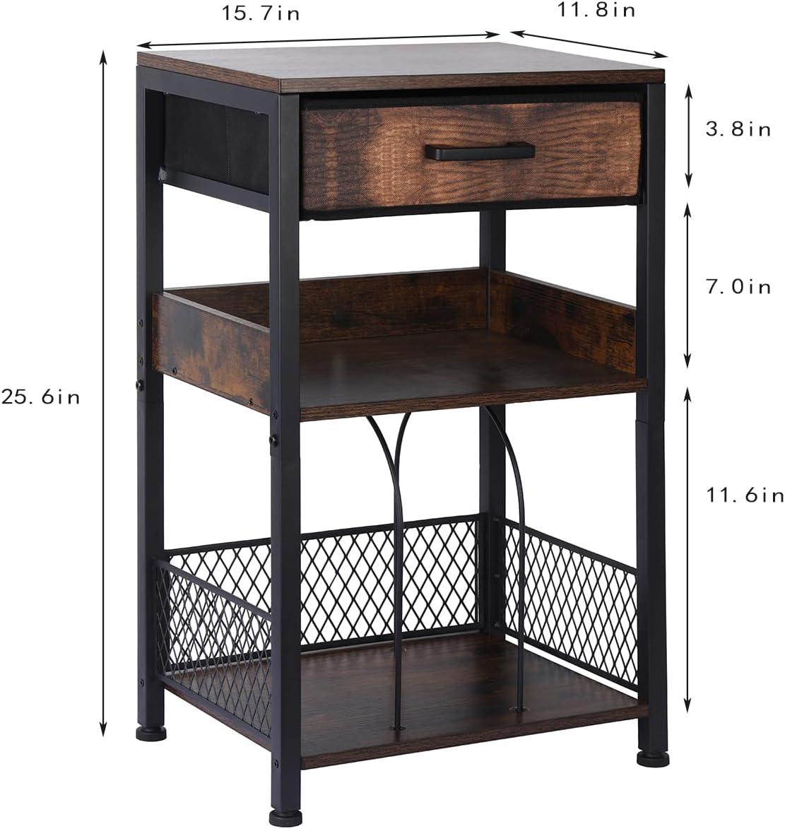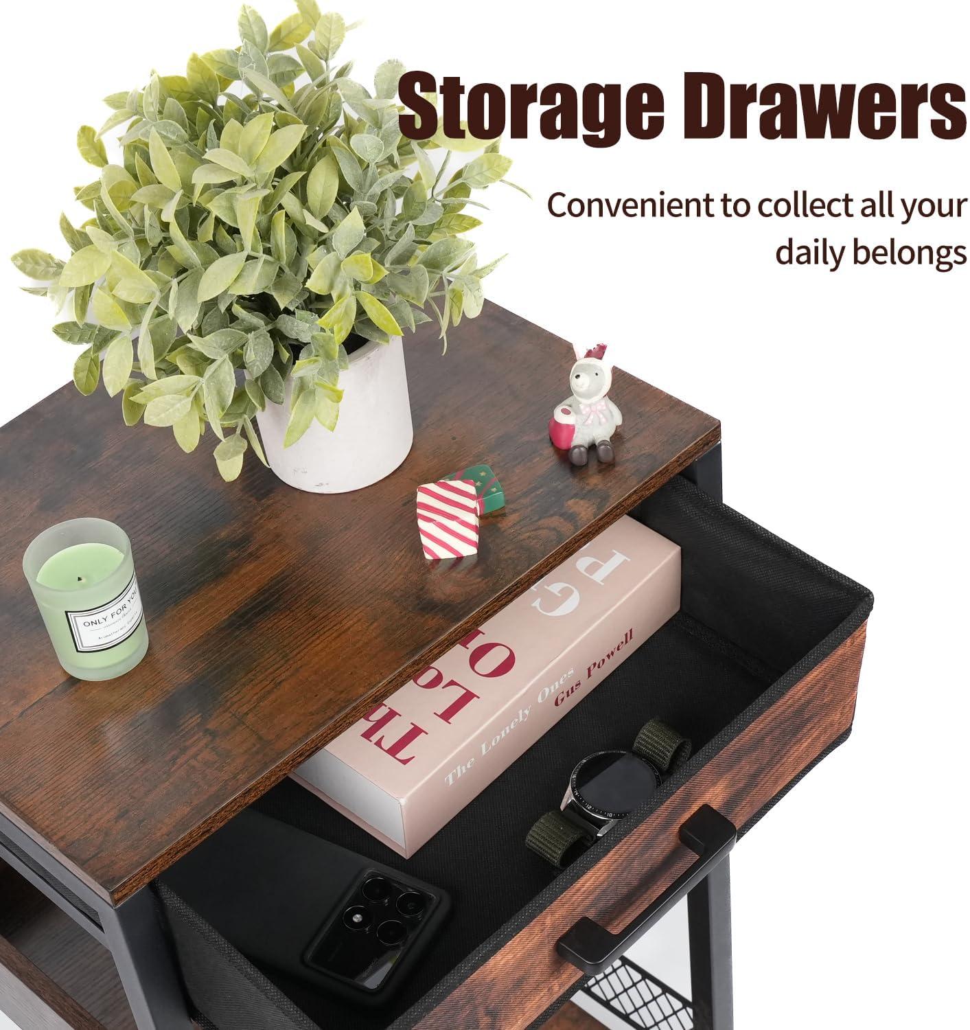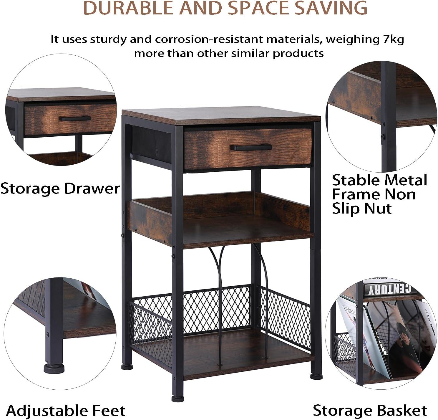 Introducing this three-tier side table into our living and bedroom setup has truly been ‌a game changer for managing small spaces. Its ​ compact 24.8-inch height perfectly complements the scale of our rooms, allowing us to place everyday essentials within easy reach without​ overcrowding. The combination of rustic brown wood grain and a ‍matte ⁤black metal frame offers a subtle industrial charm that enhances the modern vintage vibe we enjoy in both areas. What ‌stands out is the thoughtfully designed storage: the adjustable U-shaped dividers and removable fabric drawer let us tailor the space to fit books, remote controls, ‌or bedside necessities – balancing practicality and aesthetics seamlessly.