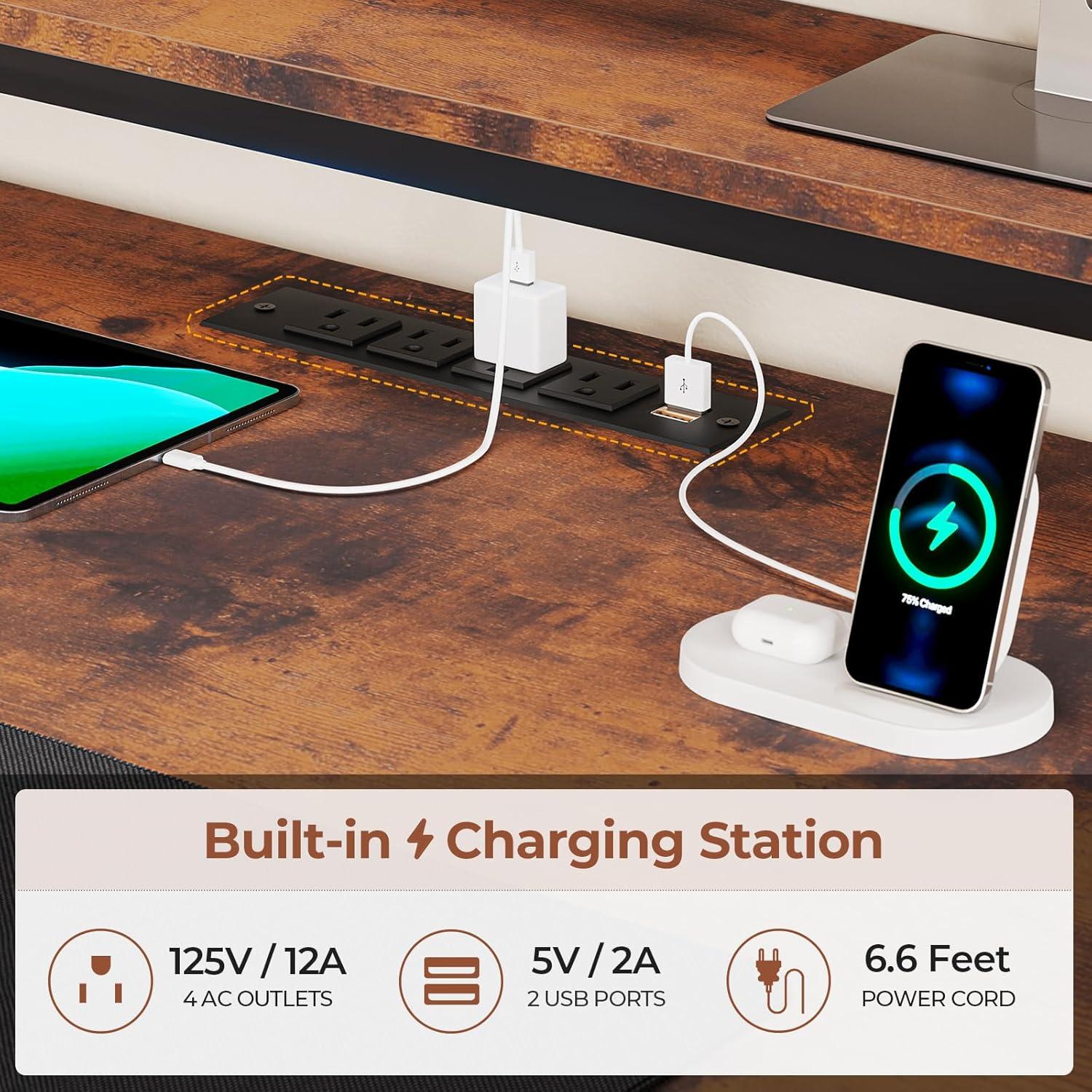Beyond storage, the added functionality truly impresses. The spacious 47-inch desktop supports multiple devices without sacrificing space, while the elevated monitor stand promotes better posture by keeping our screens at eye level. Built-in power outlets and USB ports let us seamlessly charge and power six devices simultaneously – a lifesaver for both productivity and gaming sessions. And as a nice touch, the included large mouse pad complements the setup beautifully. Below is a quick overview of key storage features we found most useful: