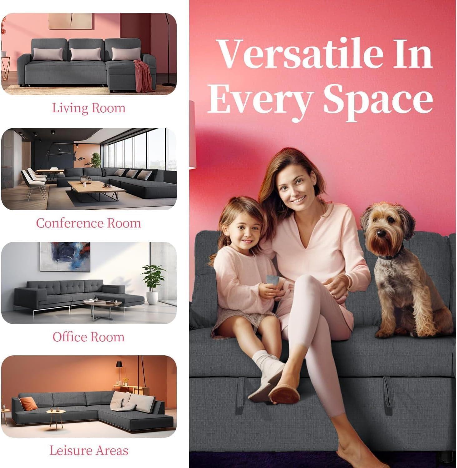 After spending quality time with this sectional,we found it to be a fantastic addition for anyone looking to maximize both style and functionality in limited spaces. Its adaptable L-shaped configuration fits neatly into apartments and small living rooms alike, while the deep grey linen fabric adds a sleek, mid-century modern flair that blends effortlessly with various decor styles. The plush cushions and ergonomic design deliver consistent comfort whether you’re lounging,working,or hosting guests. Notably, the pull-out bed feature is both smooth and spacious, transforming the sofa into a cozy sleeping area without compromising daily usability.