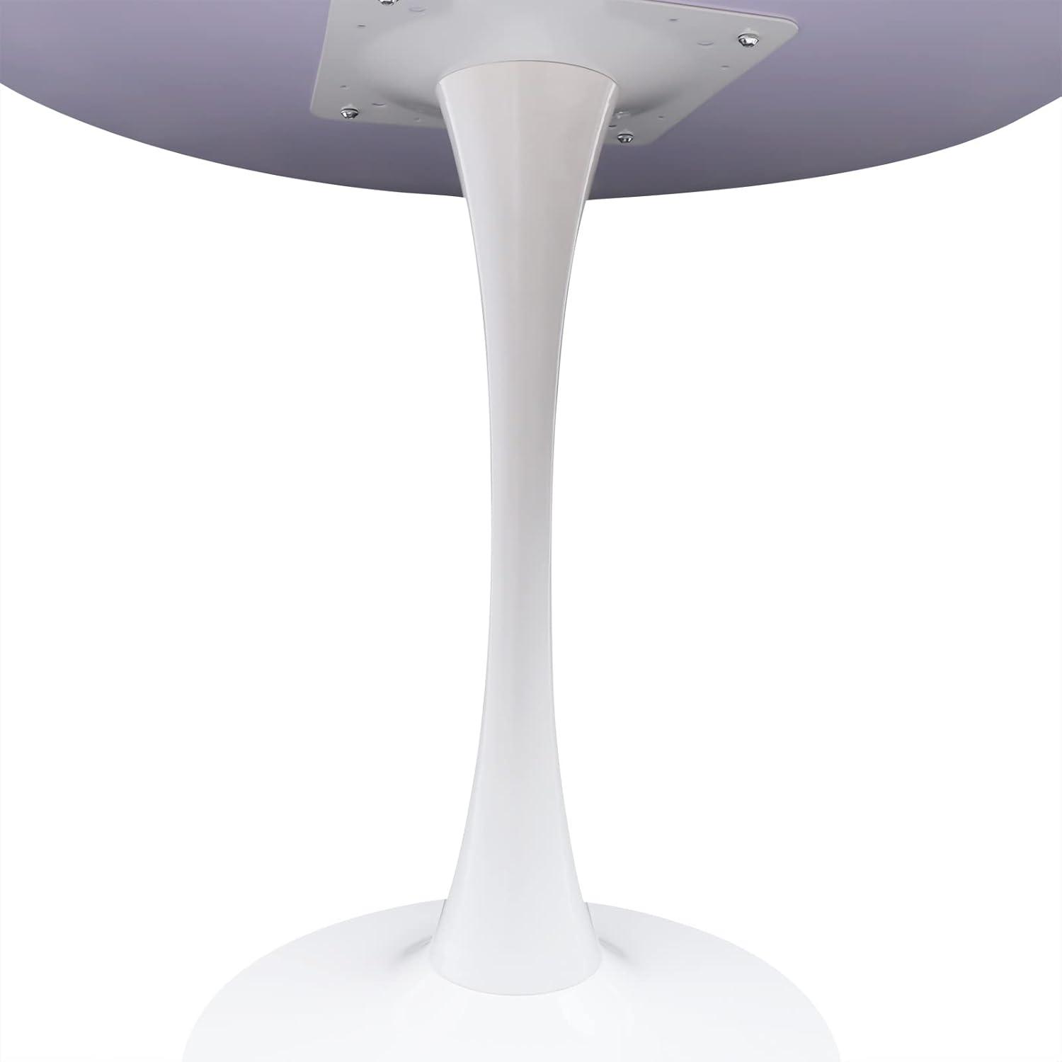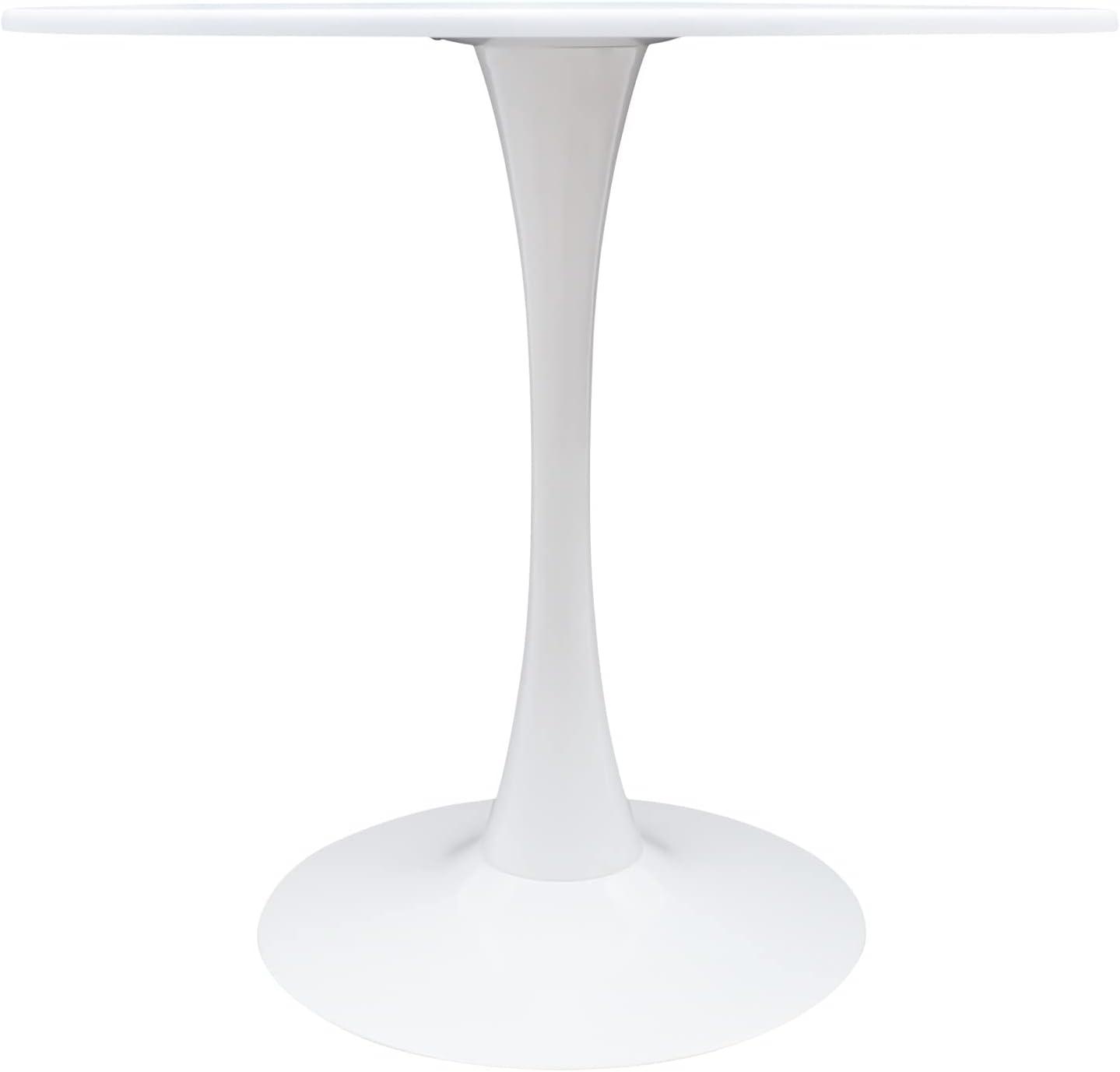 The elegant silhouette draws inspiration from mid-century modern aesthetics, capturing the iconic tulip shape with smooth, flowing lines that create a sleek yet inviting presence in any space. Crafted from high-quality MDF and reinforced with an iron base coated in a durable baking varnish,the table seamlessly combines form and function. Its pristine white finish not only brightens the room but also complements a wide range of interior styles, from minimalist to contemporary. Rounded edges enhance safety and comfort, while the smooth tabletop provides a generous surface perfect for dining, coffee breaks, or casual gatherings.