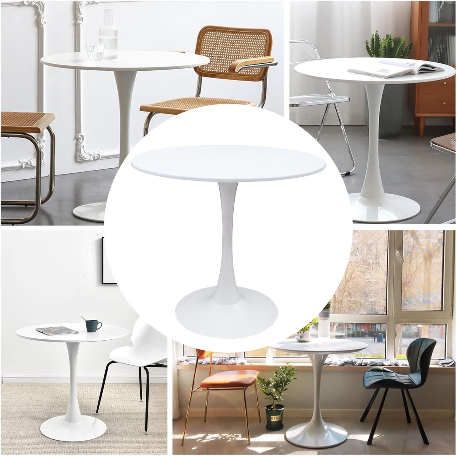 After spending considerable time with this piece,we appreciate its elegant fusion of mid-century modern charm and functional design. The smooth, rounded edges not only contribute to a sleek aesthetic but also enhance safety, minimizing the risk of bumps or scrapes. Its white MDF surface is impressively easy to clean, maintaining a fresh and inviting look even after extended use. The tulip-inspired base offers remarkable stability thanks to the low center of gravity and anti-skid feet, which keep the table firmly planted on various floor types. This design not only supports everyday dining but equally suits casual coffee breaks or working sessions, adapting seamlessly to multiple environments such as living rooms, cafes, or even boutique shops.