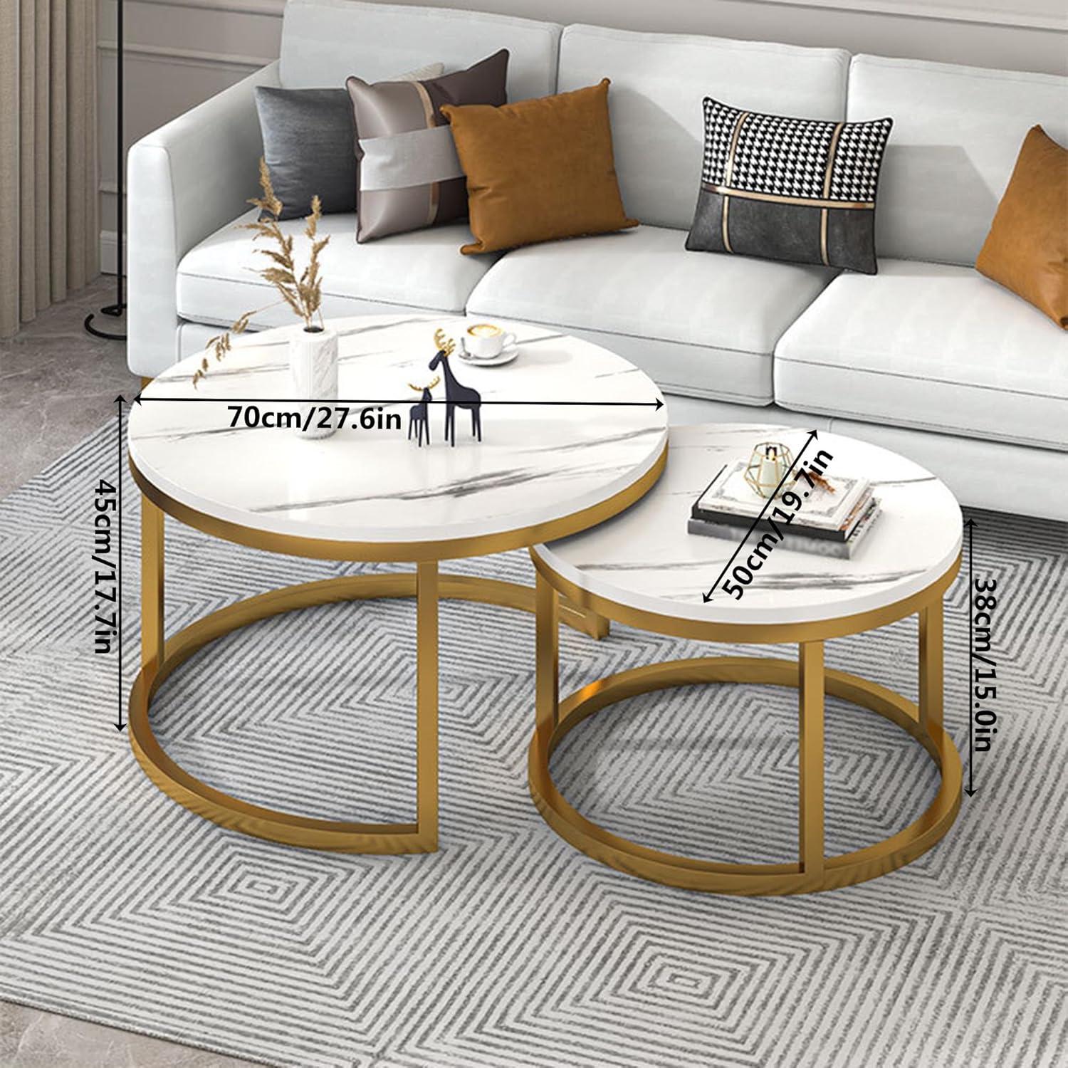 Upon unpacking the ⁣nesting tables, the first‌ thing that caught our eye was the elegant blend of the​ white faux marble laminate tops paired with the gold metal⁣ frames. The smooth, glossy surface feels durable and ‍is a breeze to clean, while the subtle marble ⁢pattern adds a touch of sophistication without overwhelming the overall design. The staggered heights and differing diameters‌ of​ the two tables‌ give great flexibility in styling and ⁣function. Whether nested together to save space or⁤ placed apart as individual ⁢coffee or ​side tables, their modern look effortlessly complements various⁣ décors in living rooms, offices, or even patios.