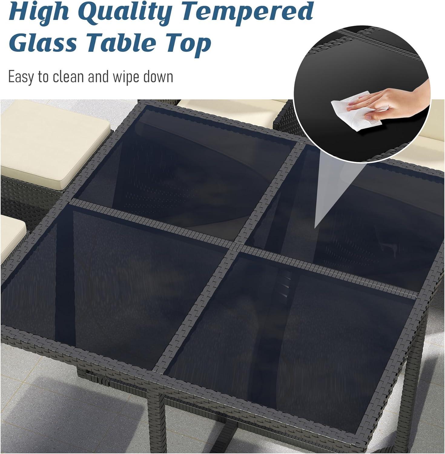 After spending considerable time‍ with this ⁣outdoor furniture set, we find it to be an excellent balance of style, comfort, and space-saving practicality.⁣ The hand-woven PE rattan combined with ‌galvanized iron pipes ensures ⁣durability‍ without adding excessive weight, making it both sturdy and easy to move. The stackable ‍chairs with ‍foldable backrests and ​detachable‍ cushions are a thoughtful ‍touch,allowing effortless storage and setup. Whether you’re ‍hosting a lively gathering or enjoying a quiet dinner al fresco, the cushioned seats and ottomans enhance relaxation ⁤by providing comfort and support. The tempered glass tabletop adds a sleek, modern appeal, perfect for casual or ⁣formal​ outdoor dining.