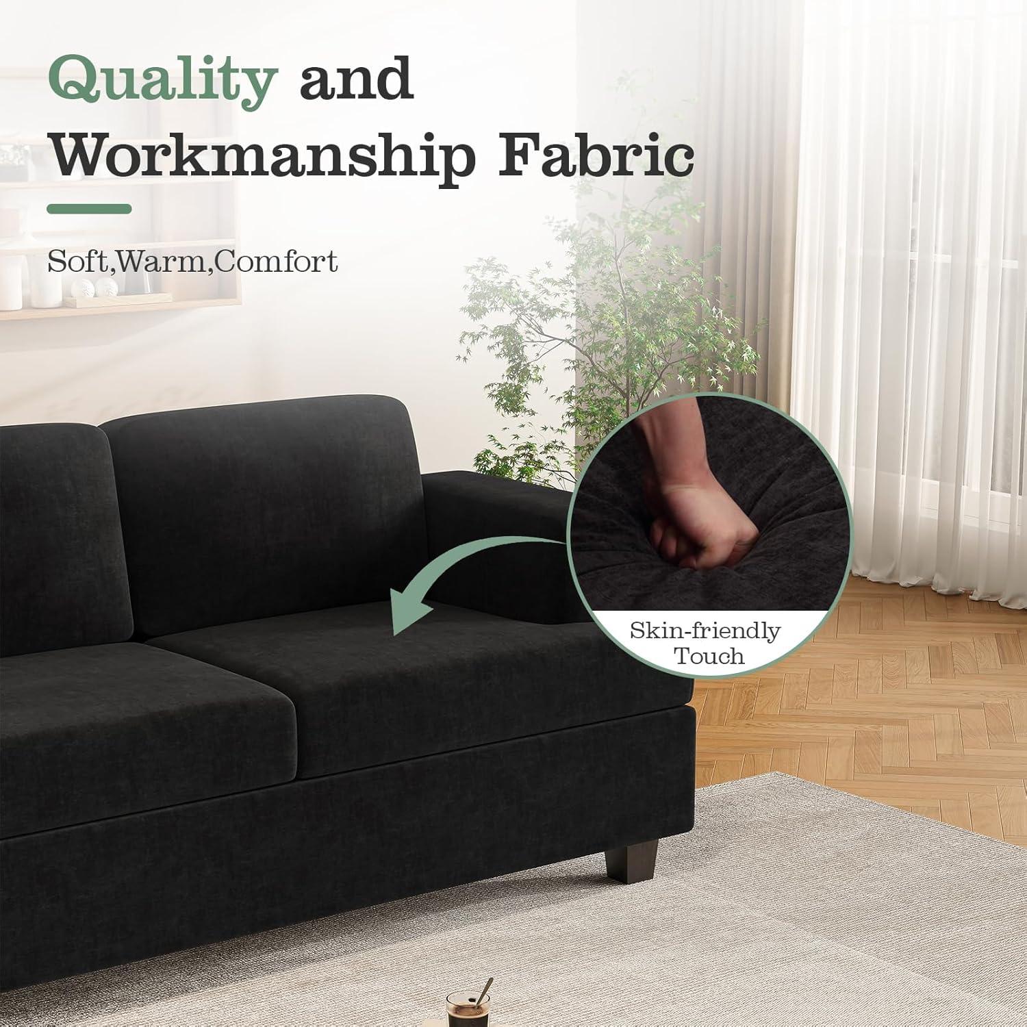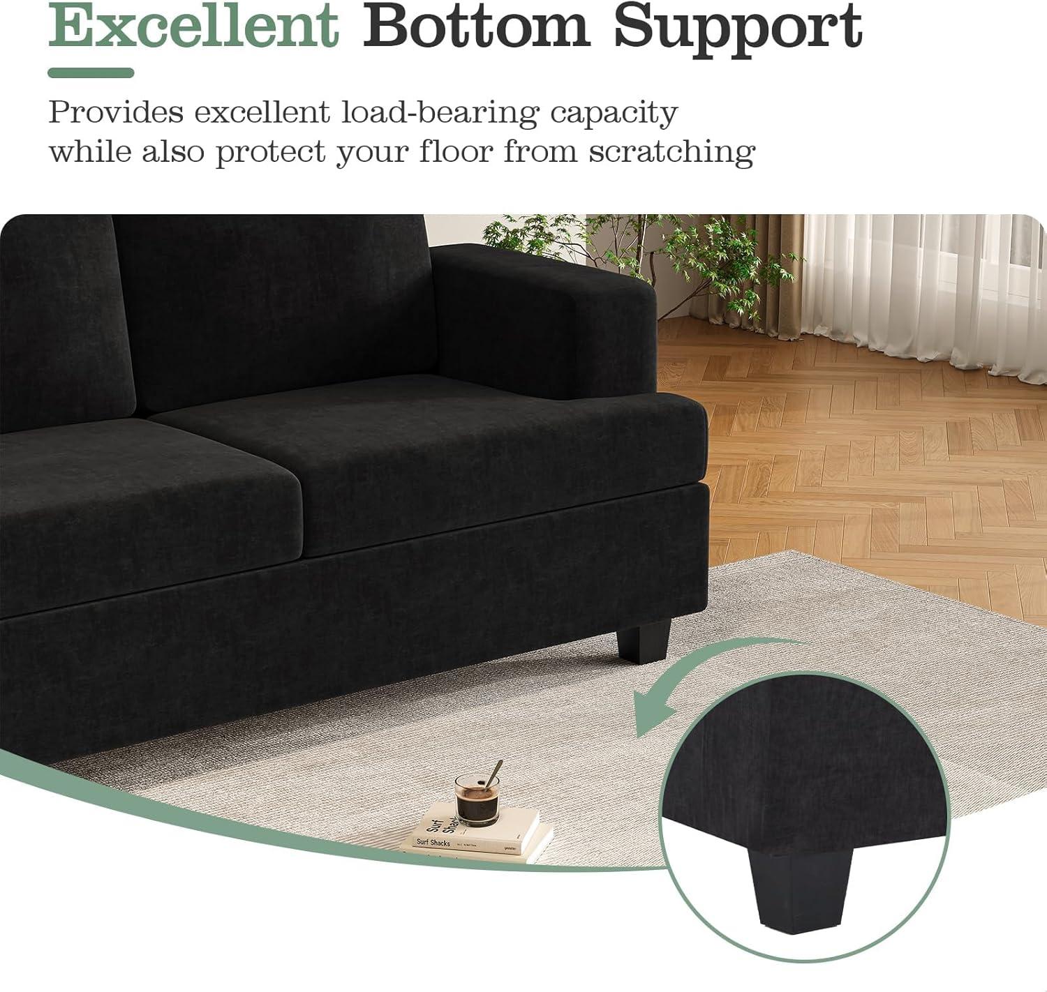 This sofa set adapts seamlessly to various living spaces, making it an excellent choice whether you live in a cozy apartment or a more expansive lounge area. Its dimensions are well-suited for small rooms, where it offers a comfortable width without overpowering the space. The thick seat depth combined with wide armrests adds to its versatility,allowing the sofa to double as a lounging spot or an extra sleeping surface for guests. The black chenille fabric lends a complex yet understated look, easily complementing most décor styles while remaining practical for everyday use. Assembly is straightforward, and the design includes thoughtful touches like self-adhesive velcro on cushions to keep everything snugly in place.