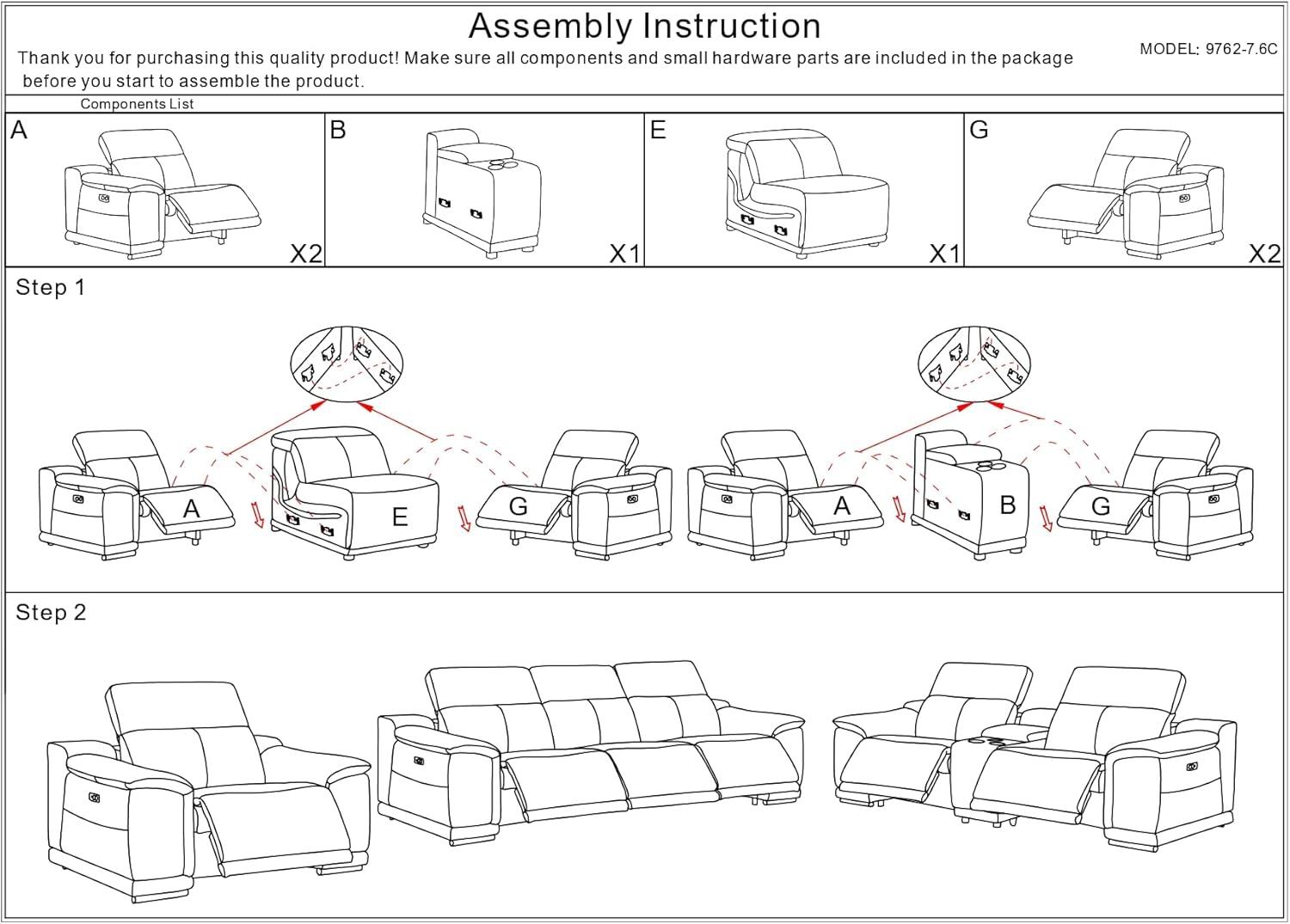 - Power recline motors: Reliable with smooth infinite position adjustments