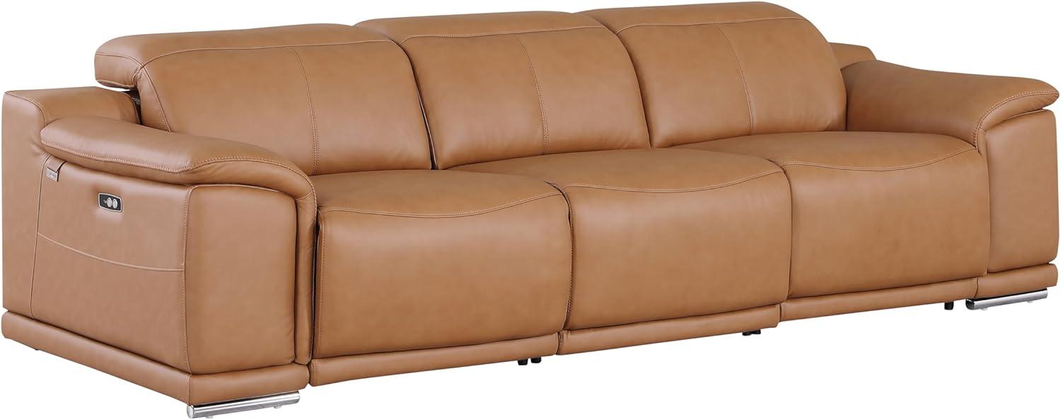 In our living room, the sofa, loveseat, and chair come together to create an inviting and cohesive seating arrangement that effortlessly balances style and function. the rich cognac top-grain Italian leather feels luxurious and ages beautifully, while the power reclining feature on all three pieces allows each of us to customize our comfort with ease. We appreciate how the adjustable headrests provide tailored support, making it perfect whether we’re all gathered for a movie night or simply relaxing with a book. Each piece’s thoughtful design elements – from the sleek stainless steel-accented legs to the integrated USB ports – keep our space modern and tech-amiable without sacrificing elegance.