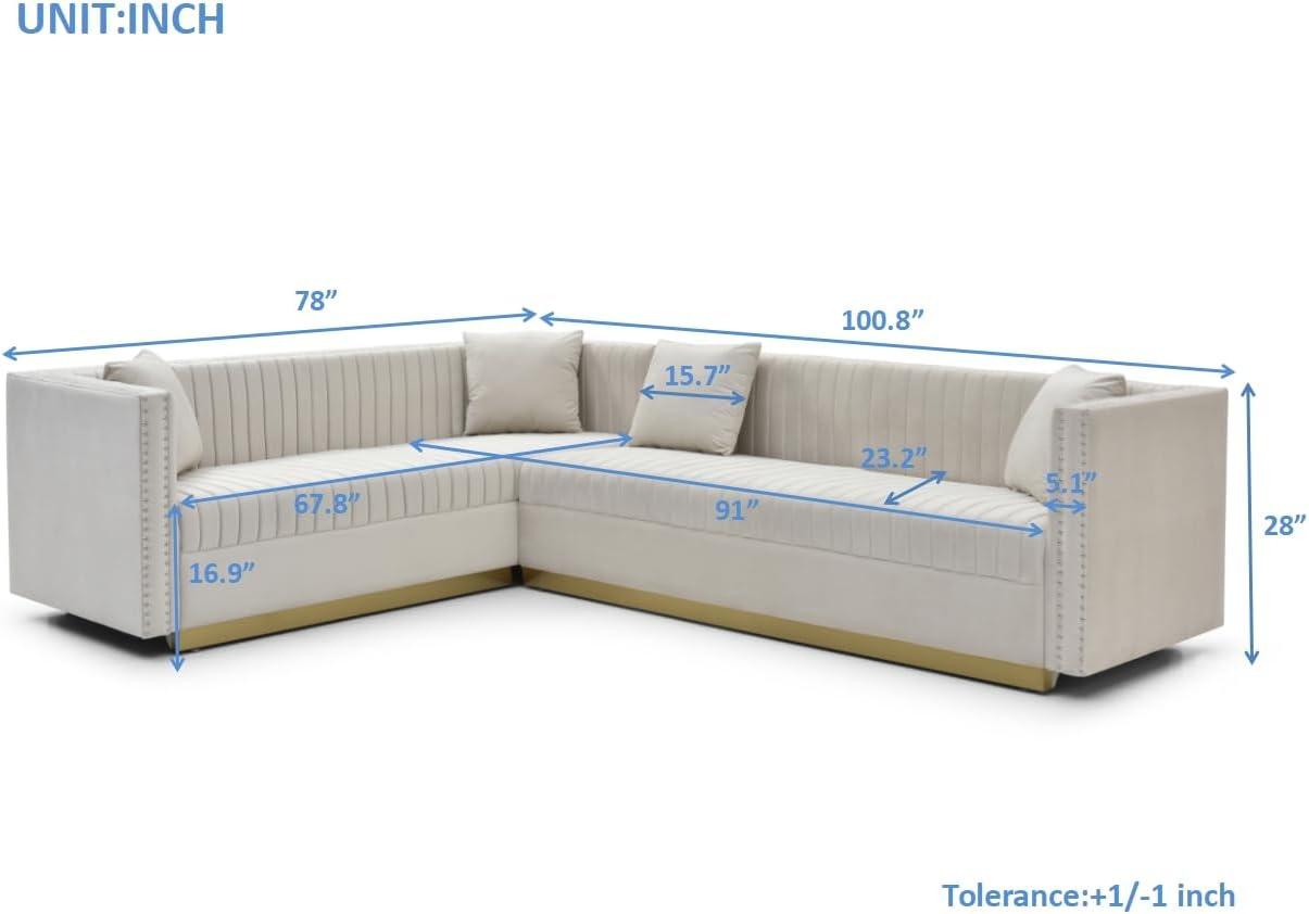 The gold metal strip accent on this sofa set instantly elevates its overall aesthetic, infusing a sense of sophistication and modern luxury into any space. Unlike plain sectional sofas, the polished gold detail catches the eye without overwhelming the design, creating a subtle yet striking contrast against the rich velvet upholstery. This metallic touch harmonizes perfectly with the vertical channel tufting, enhancing the sleek, contemporary silhouette while adding a warm luster that complements both vibrant and neutral color schemes.