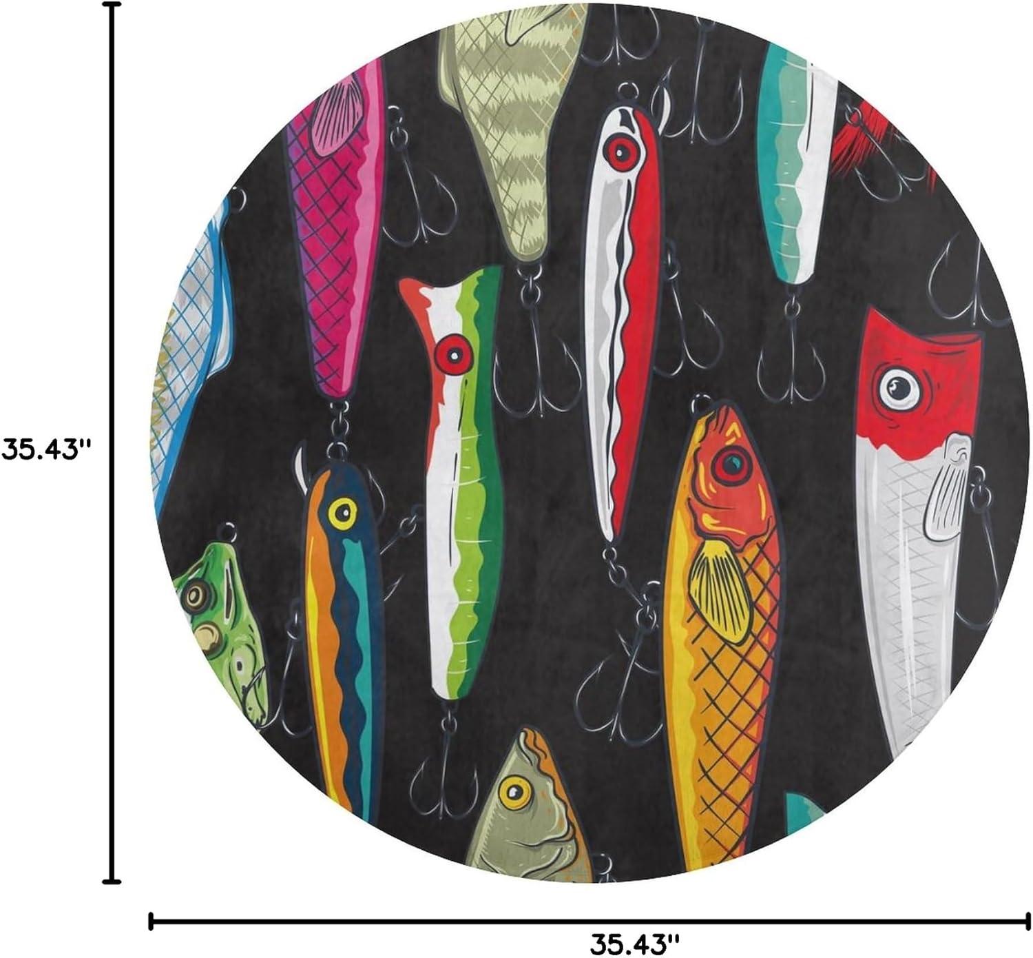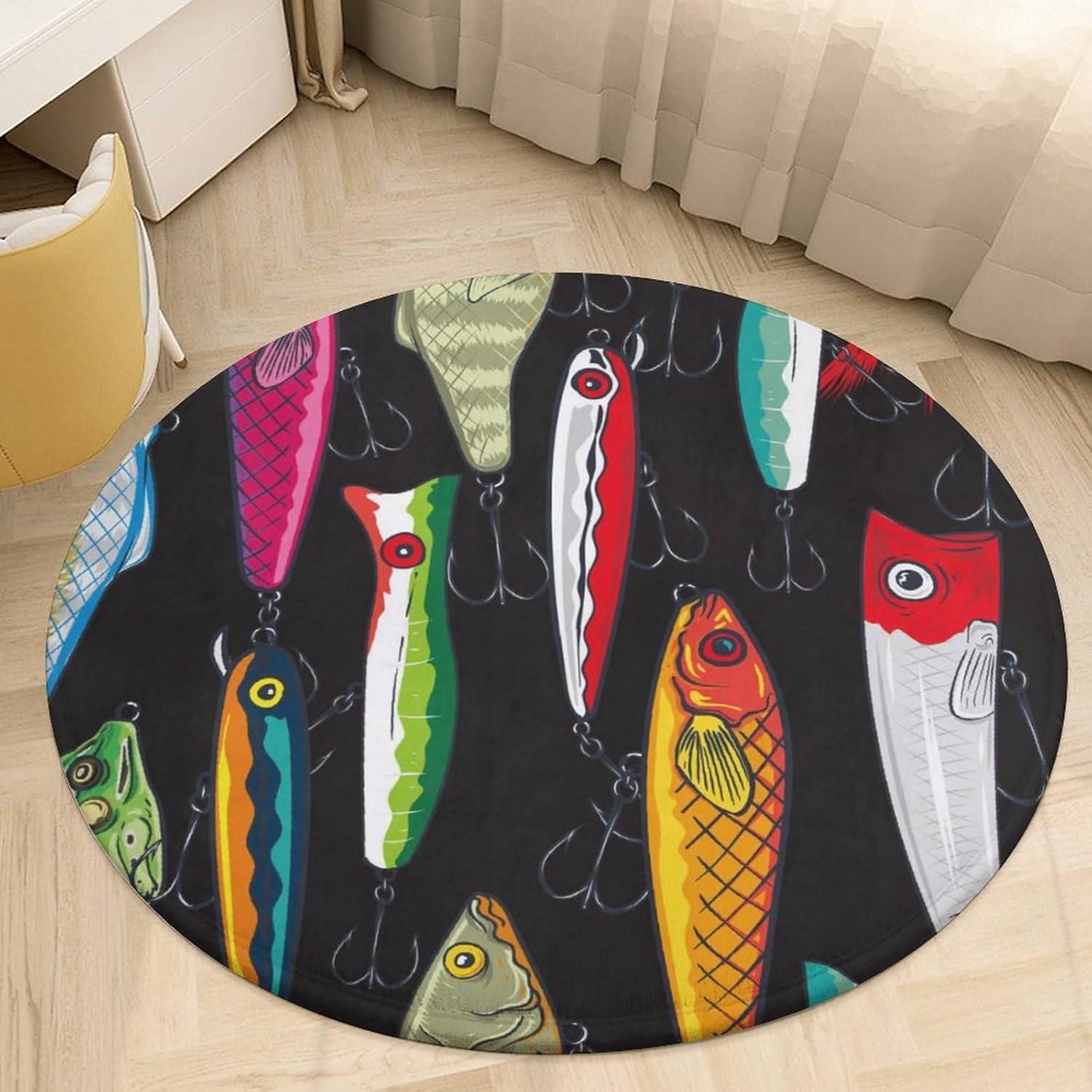 This vibrant coral velvet rug effortlessly complements a variety of interior design styles, from contemporary to coastal and eclectic themes. Its unique, colorful fishing bass lures pattern serves as a charming focal point that breathes life and character into any room. The round shape breaks the monotony of rigid lines often found in modern spaces, encouraging a playful yet elegant atmosphere. whether placed under a high chair in a busy family kitchen or as a soft accent in the living room, the non-slip backing ensures both style and functionality, blending seamlessly with diverse floor types and décor elements.