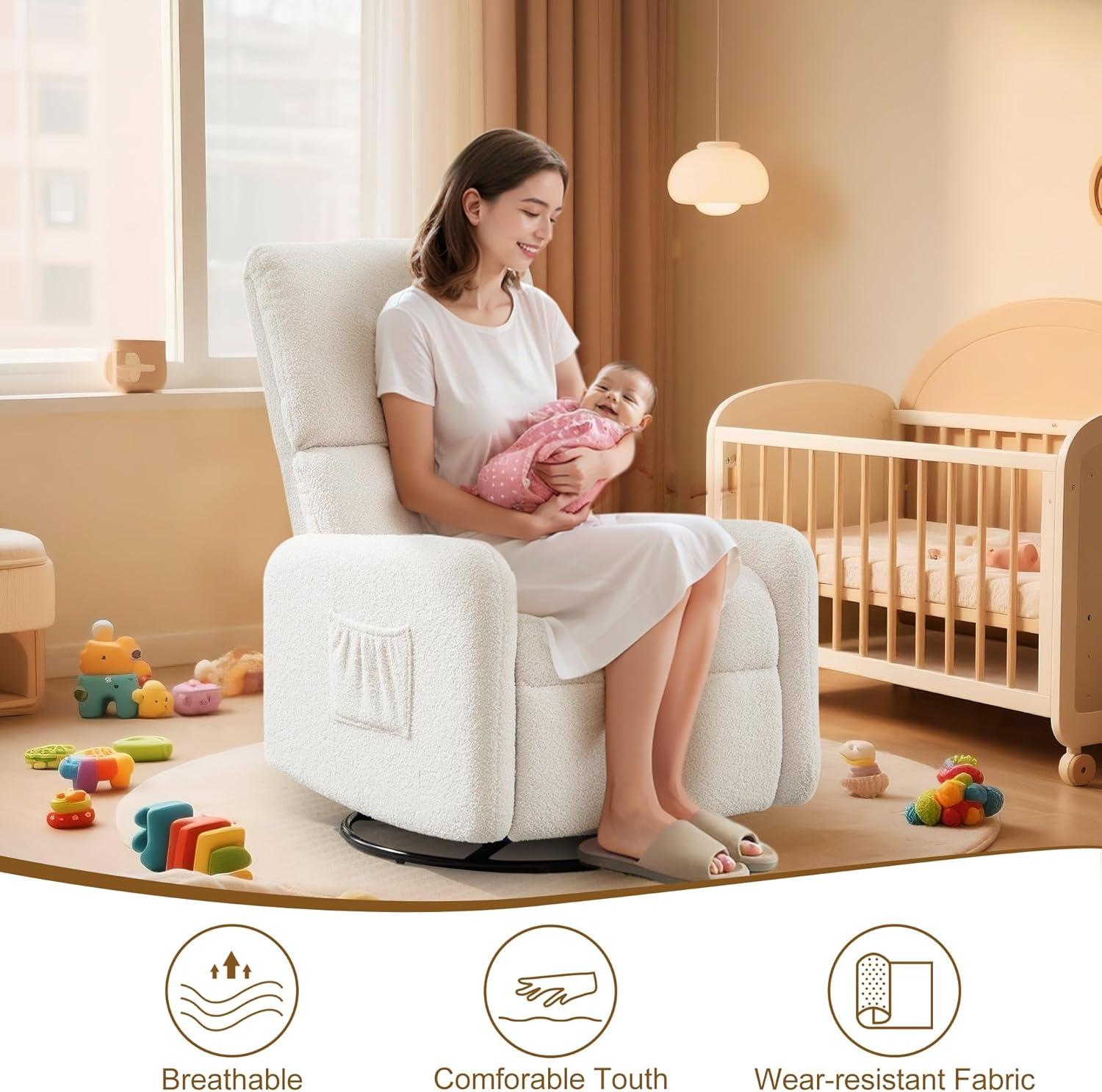 Creating a calm nursery space is all about comfort and tranquility, and this rocking chair ⁣delivers both effortlessly. Wrapped in ‍soft Sherpa fabric‌ with ‍deep cushioning, it invites us to settle in, relax, and gently sway our⁤ little ones to sleep without any disruptive noise or ‍movement. the smooth 360°⁤ swivel​ combined with‍ a gentle 30° rocking​ motion helps soothe and calm, perfect for late-night feedings or quiet moments. Its sturdy steel base supports up to ‌300 pounds, providing confidence in stability while‌ the ⁤compact design fits seamlessly into⁣ cozy corners without overwhelming ⁣the room.