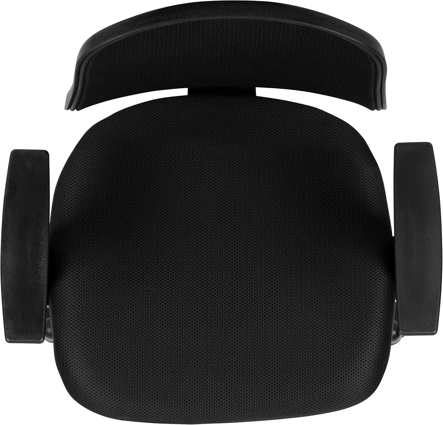 Overview of the EMMA + OLIVER Pivot Back Black Mesh Swivel Task Office Chair with Arms