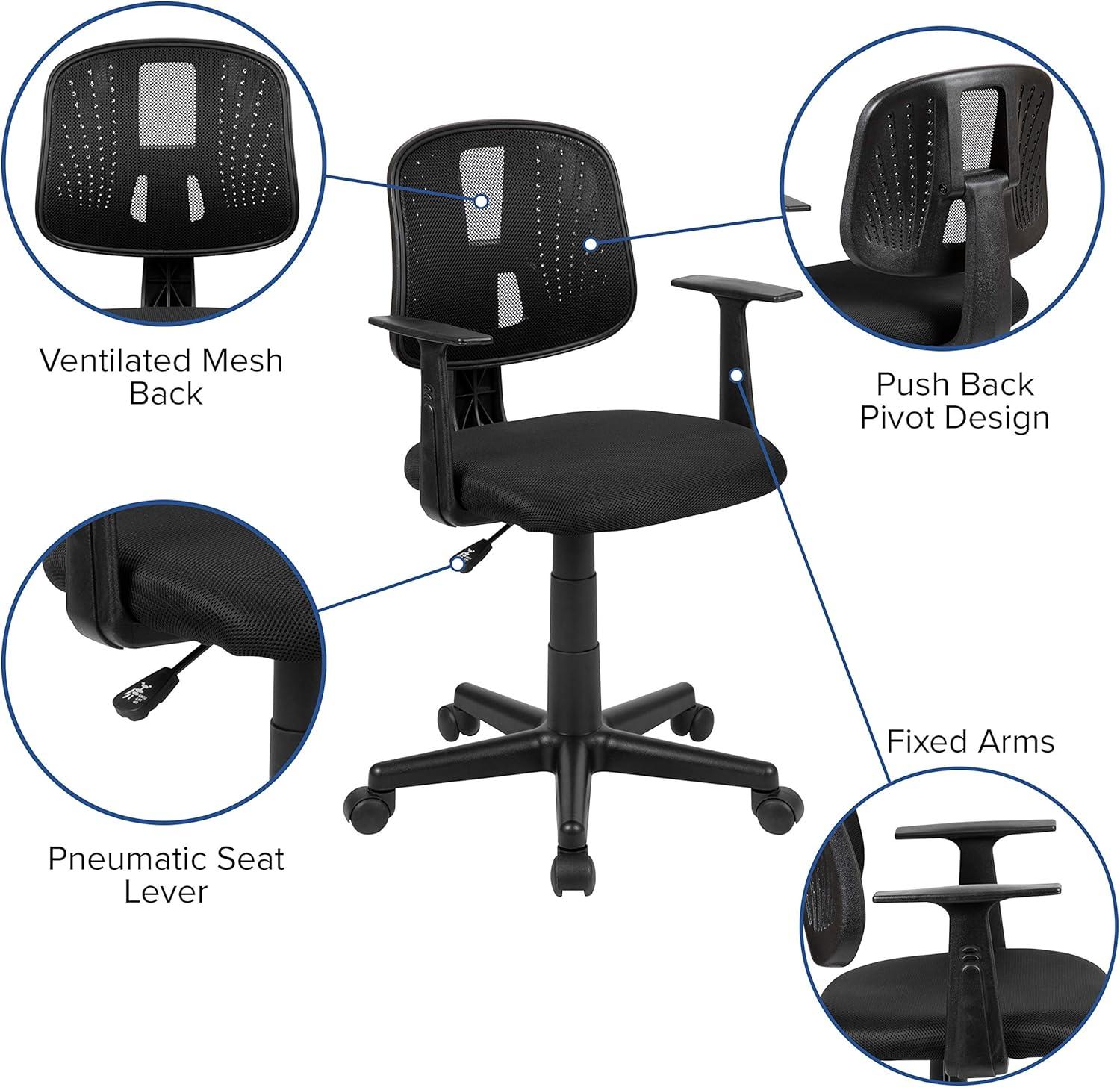 This office chair combines style and functionality in a sleek, black mesh design that brings both comfort and breathability to our workspace. The ventilated backrest allows remarkable airflow, reducing heat build-up during long hours of sitting, while the innovative pivoting back offers dynamic support by reclining naturally without the need for adjustment knobs. We especially appreciate the gentle lumbar curve that supports our lower back, encouraging better posture throughout the day. Fixed nylon arms provide sturdy upper body support, making it easier to remain comfortable and focused on tasks without unnecessary strain.