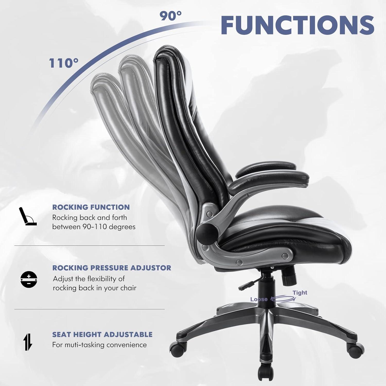 As we settled‍ into the Executive Office Chair, we found ourselves weighing the blend of comfort and practicality it offers. Its plush, high-density​ foam padding and built-in spring pockets provide a​ seat that feels as inviting as a sofa, supporting us‍ through long hours at the desk ⁣without the usual fatigue creeping in. The flip-up arms add an⁢ elegant versatility, letting us tuck the chair neatly under the desk​ when space is tight, while the 360-degree‍ swivel and smooth-rolling casters ⁢ensure effortless mobility ⁢around our workspace.