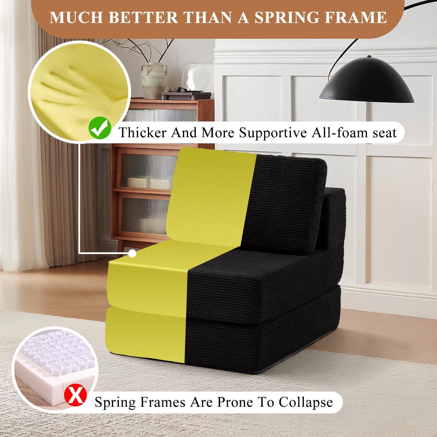 After spending time with this sofa, it’s clear that its modularity and deep, cloud-like cushioning offer an inviting spot to relax or work. The ergonomic shape truly supports the body’s natural curves, while the soft corduroy fabric adds a touch of cozy sophistication. We appreciate its versatility, especially for smaller spaces like studios, dorm rooms, or apartments where space-saving solutions are a must. The straightforward setup, requiring no assembly, makes it super convenient to pull out and fold away as needed. While the separate cushions don’t attach to each other, the included non-skid dots hold the pieces well enough for typical use, although a bit of occasional adjustment keeps everything aligned perfectly.