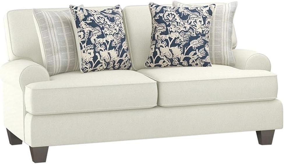 | Patterned accent pillows and rolled arms add elegant transitional style without feeling dated. | The ivory fabric, while lovely, is prone to showing stains and might demand regular upkeep. |
