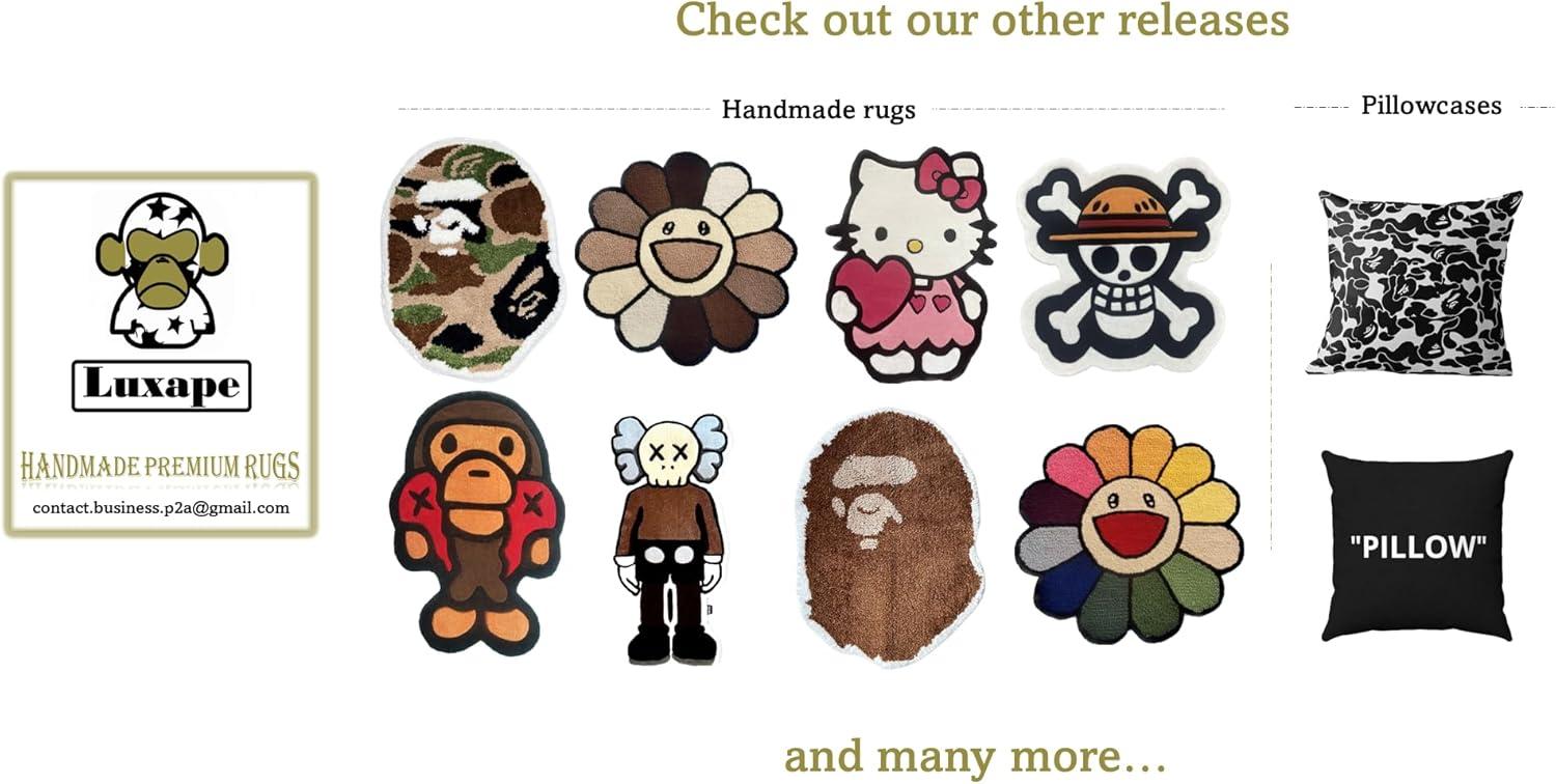 Fans of streetwear culture, anime enthusiasts, and anyone looking to add a bold, artistic touch to their living space will find this rug a perfect fit.Its handmade craftsmanship appeals especially to those who appreciate authentic, artisan-made home decor that breaks away from generic mass-produced items. Whether you’re decorating a bedroom, game room, or workspace, this piece is bound to become a statement accessory that complements both casual and hypebeast-inspired interiors.