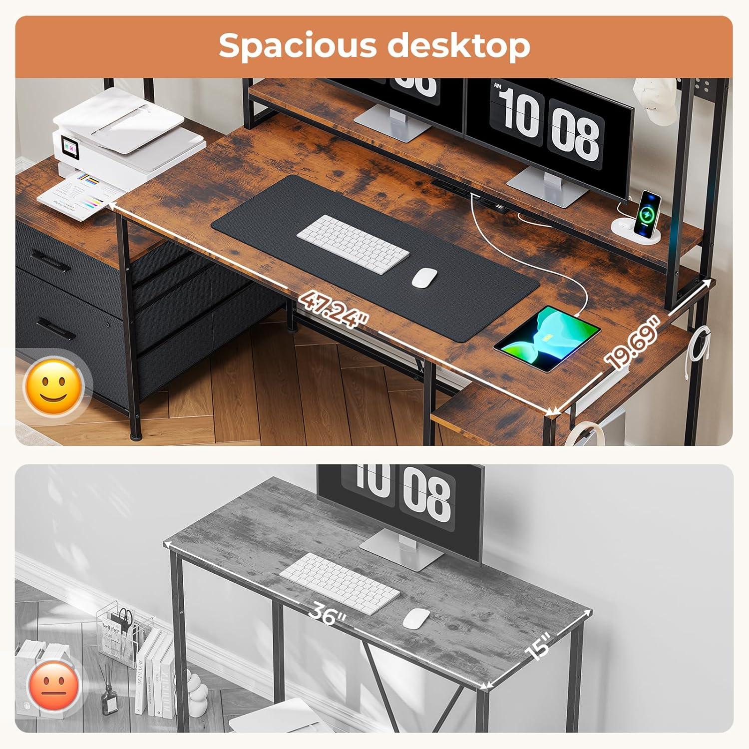 | Compact footprint (40 x 20 inches) fits snugly into smaller spaces without feeling cramped. | The narrower desktop might not accommodate extremely large dual-monitor setups comfortably. |