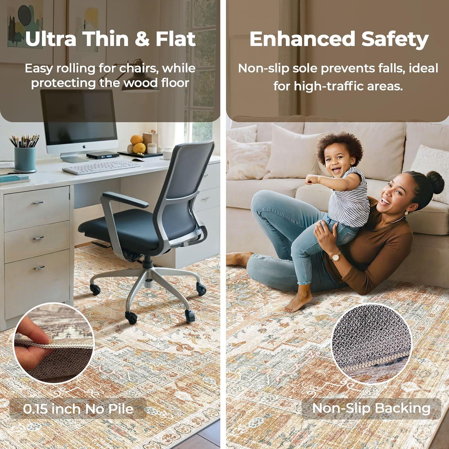 We appreciate how practical this piece is, with stain resistance and a machine washable feature that make upkeep simple and fuss-free. The muted yet warm orange tones translate well from screen to room, adding a cozy vibrancy without overwhelming the decor. While the rug’s thinness won’t offer much cushioning underfoot, it performs well under beds or dining tables where softness isn’t the priority.For those wanting an easy-care accent with a classic boho vibe, it hits many key marks, balancing style, durability, and convenience in one package.