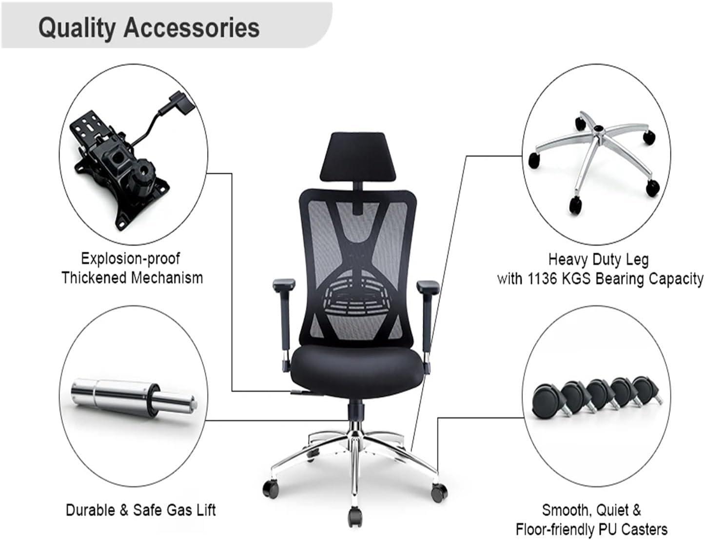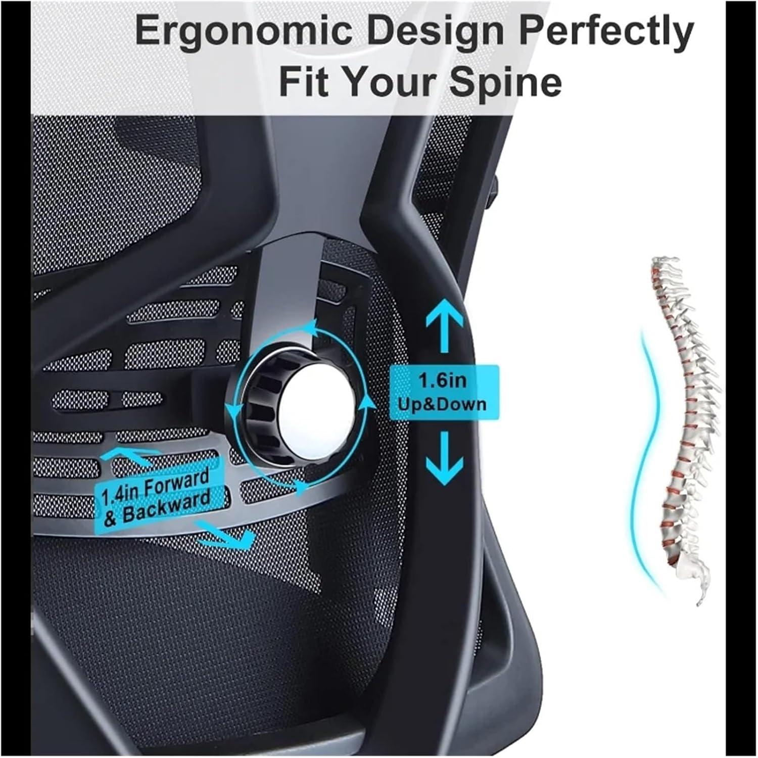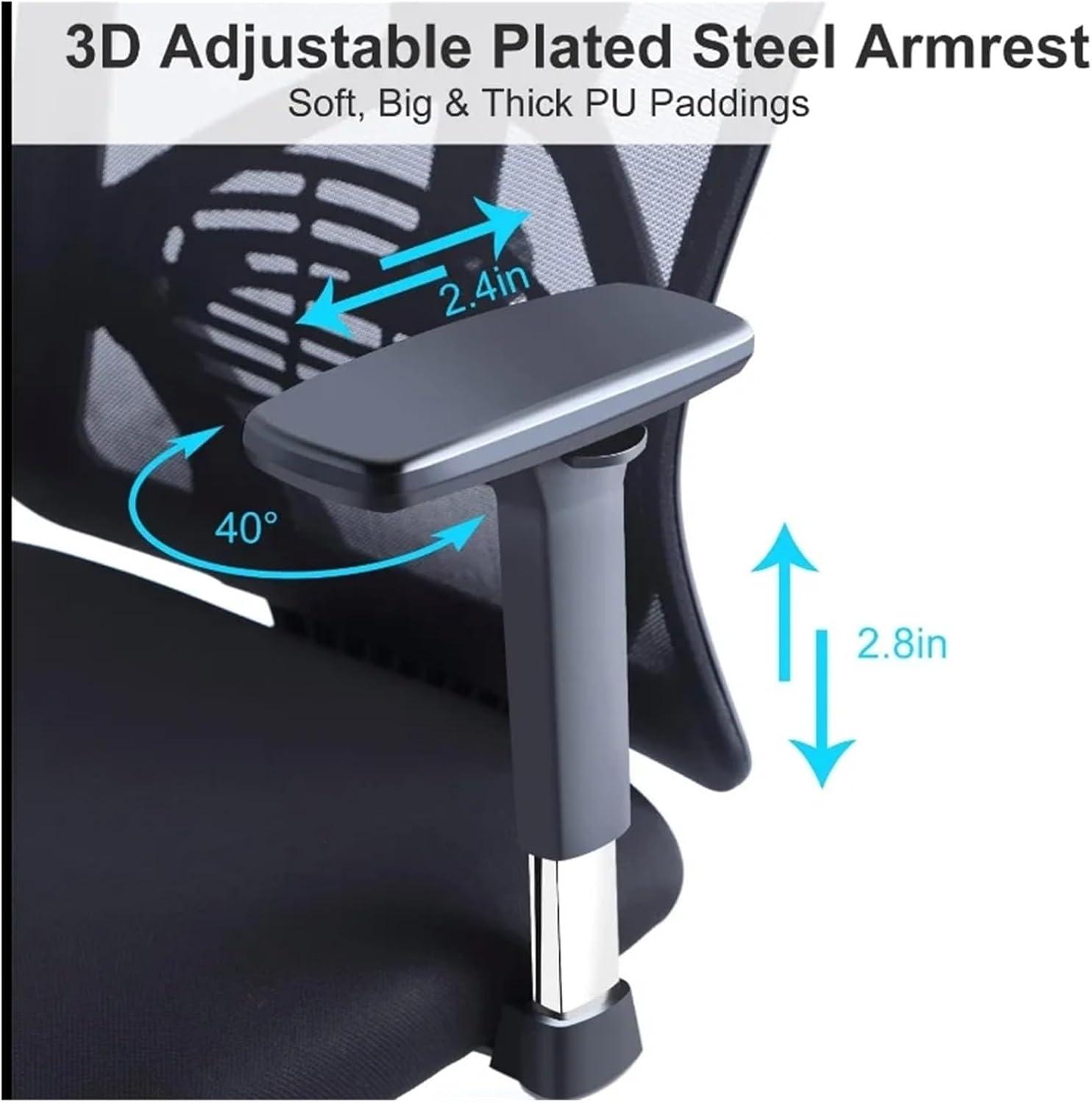 Our time with this high back desk chair has truly elevated our workspace comfort. Designed with ergonomics in mind,it features an adjustable backrest that safely reclines between 90° and 130°,allowing us to effortlessly switch from focused work to relaxed breaks or even quick naps. The adjustable lumbar support aligns perfectly with the natural curve of our spine, reducing pressure during extended hours. The breathable mesh combined with a thick high-density sponge cushion ensures excellent airflow and softness, striking the ideal balance between support and comfort. We especially appreciated the 3D metal armrests,which adjust to fit our preferred height and angle,preventing strain on shoulders and wrists.