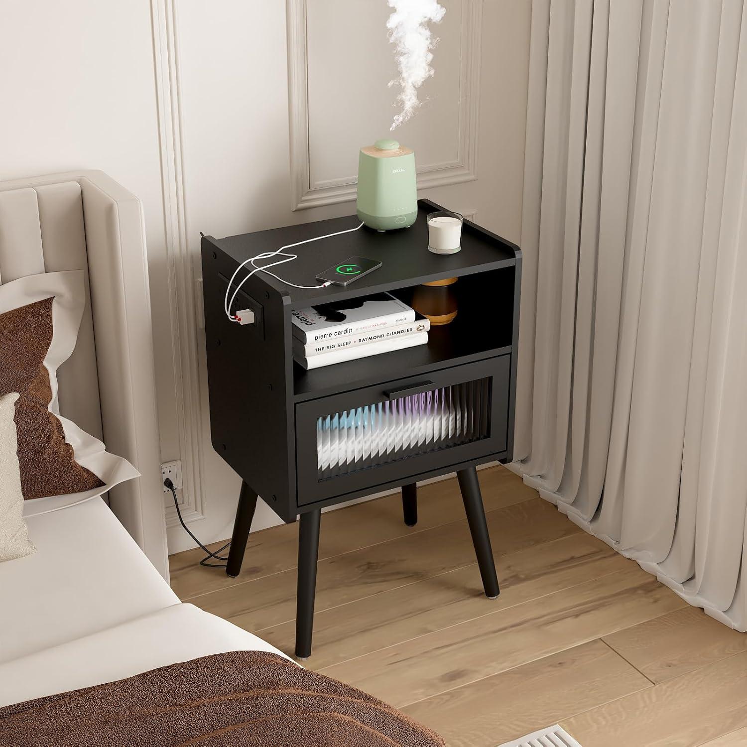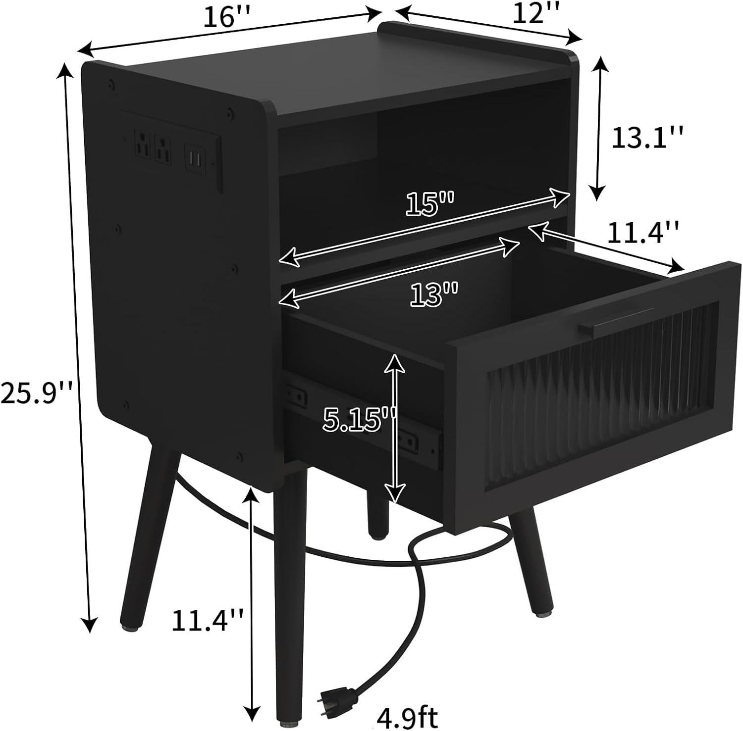 | Generous glass drawer size offers ample storage compared to similar nightstands, perfect for bedside essentials. | The electrical cord is 6.5 ft long; while flexible, it may still limit placement options depending on room layout. |