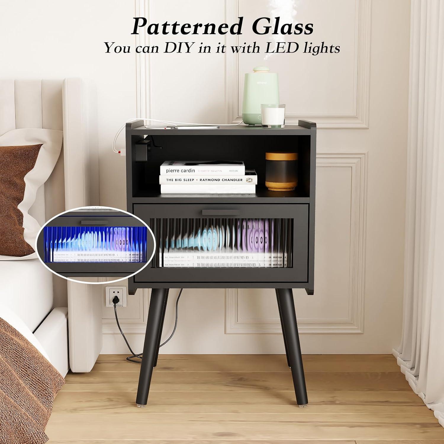 This piece is ideal for those who appreciate a blend of style and functionality in their living spaces. If you’re someone who frequently charges multiple devices at night or while relaxing on the sofa, the integrated USB ports and power outlets bring convenience within easy reach. Its sleek mid-century modern design with patterned glass adds a sophisticated touch, making it perfect for anyone looking to enhance the aesthetic value of their bedroom or living room without sacrificing practicality. The larger glass drawer is a bonus for those who need extra storage for personal items, keeping essentials tidy and accessible.
