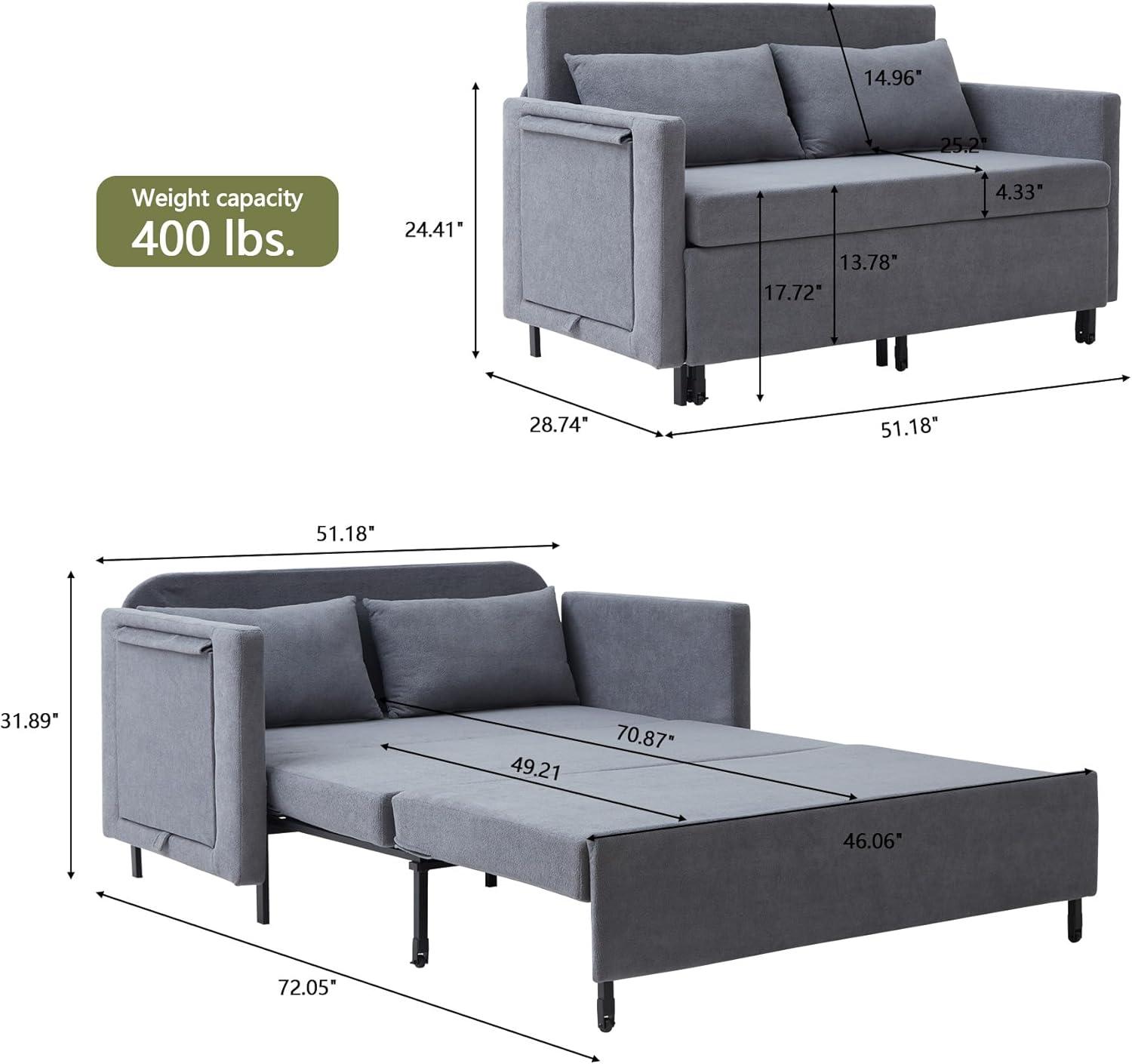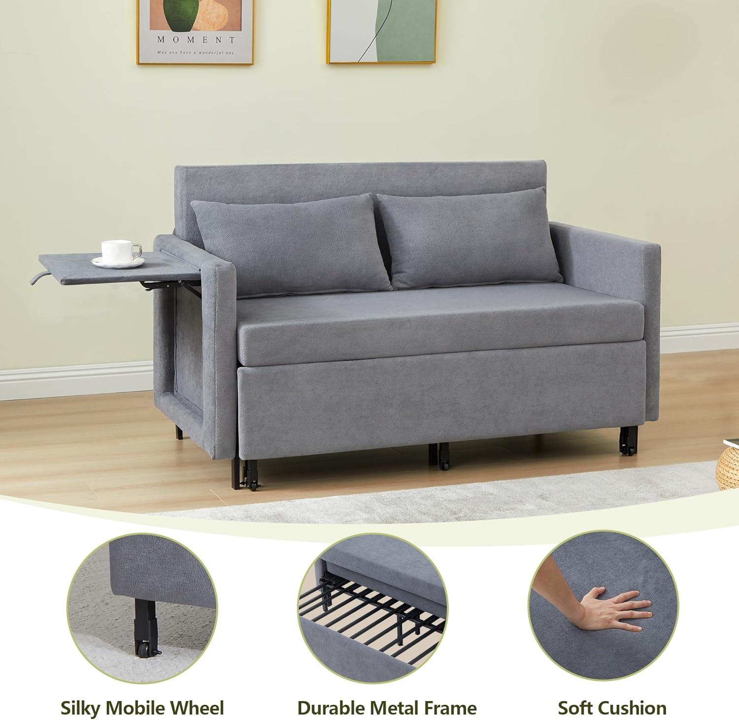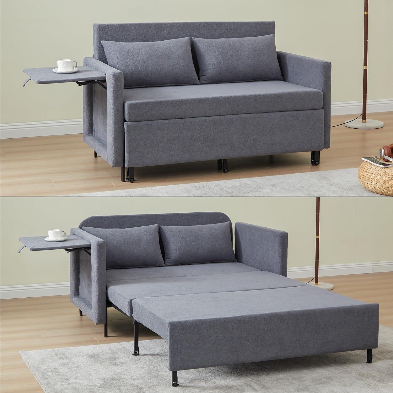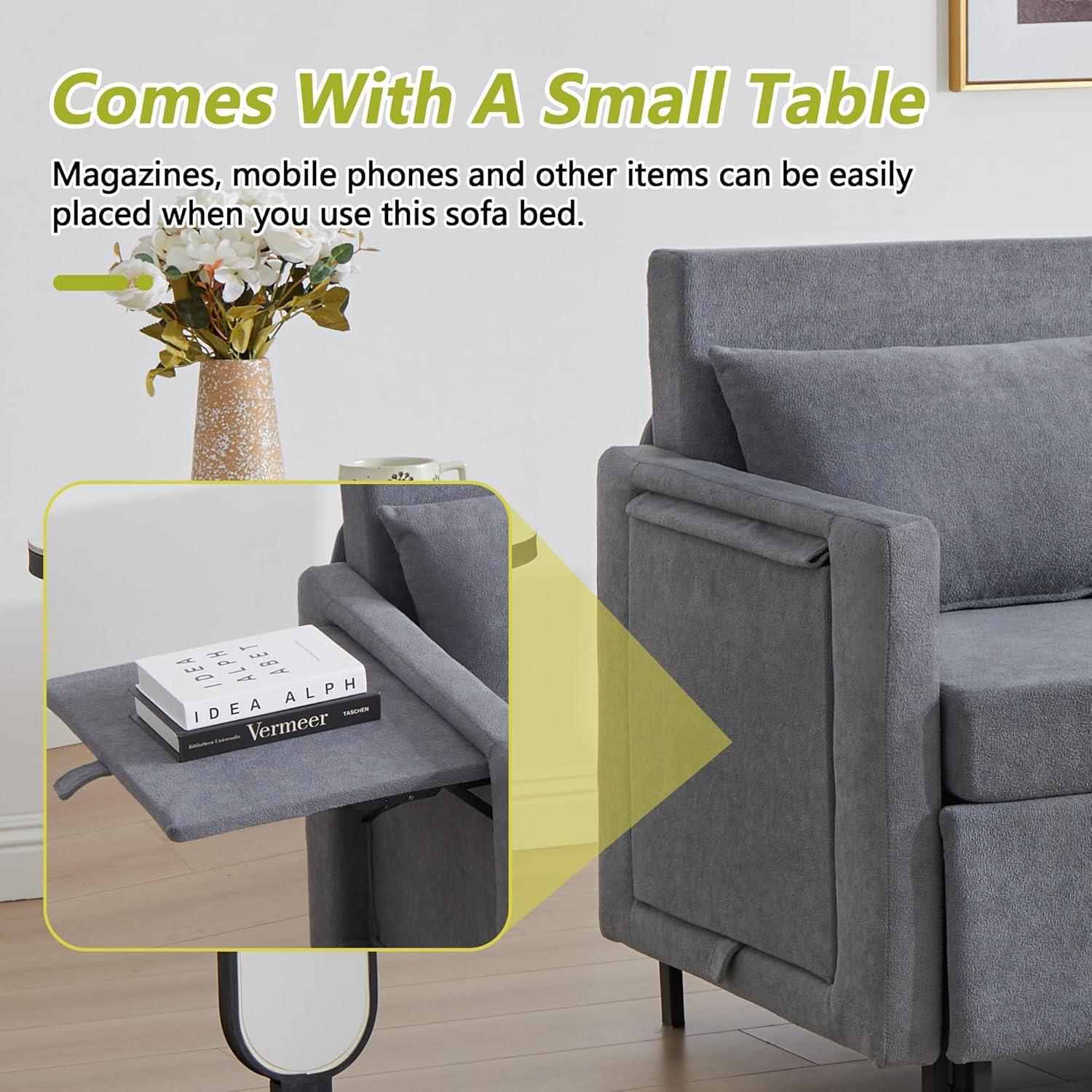This couch bed is an excellent choice for those who live in compact spaces such as apartments, studios, or dorm rooms. Its multifunctional design-with the ability to transform from a loveseat to a full sleeper-makes it ideal for anyone needing to maximize usability without sacrificing comfort. The hidden side table adds a clever touch, perfect for keeping essentials within reach whether you’re working, relaxing, or entertaining guests. Plus, the medium-firm chenille upholstery prioritizes back support, making it suitable for extended sitting or restful nights.