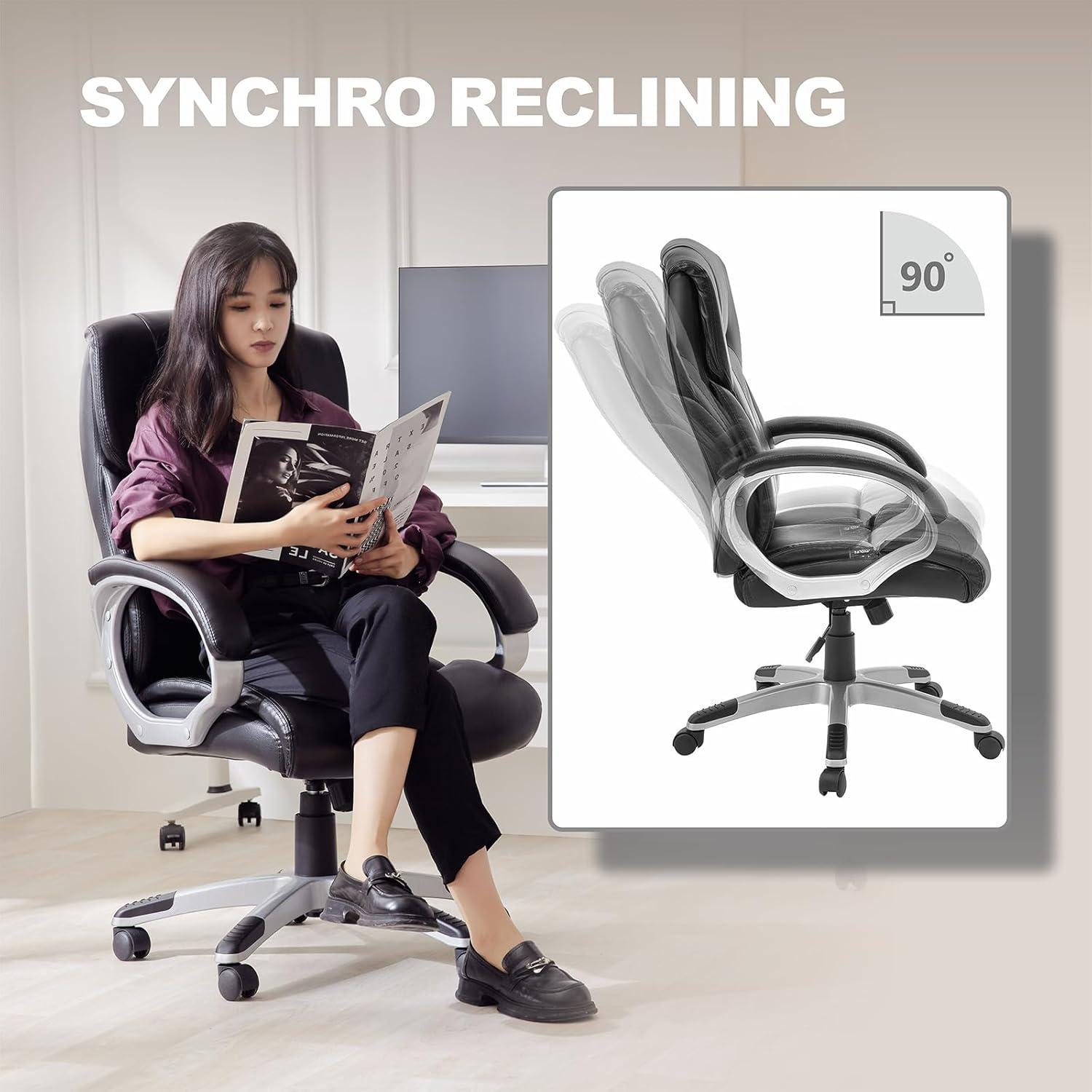 | Generous weight capacity of 400 lbs, making it ideal for big and tall users. | The faux leather finish, while elegant, may not breathe as well as genuine leather during extended use. |
