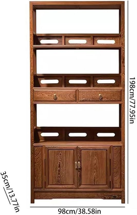 Crafted from rich mahogany wood, the build quality of this bookshelf instantly stands out. the use of mortise and tenon joints throughout the structure not only embraces traditional woodworking techniques but also provides exceptional sturdiness and longevity. Its tall, floor-standing frame measures 198cm in height, offering a commanding yet elegant presence in any room. the three-sided fence design with hollowed-out fish door holes adds a refined touch, allowing breathability and a unique aesthetic appeal while maintaining structural integrity. We appreciate how the thick panels and smooth finish resist everyday wear, making it a dependable addition to high-traffic areas like living rooms and home offices.