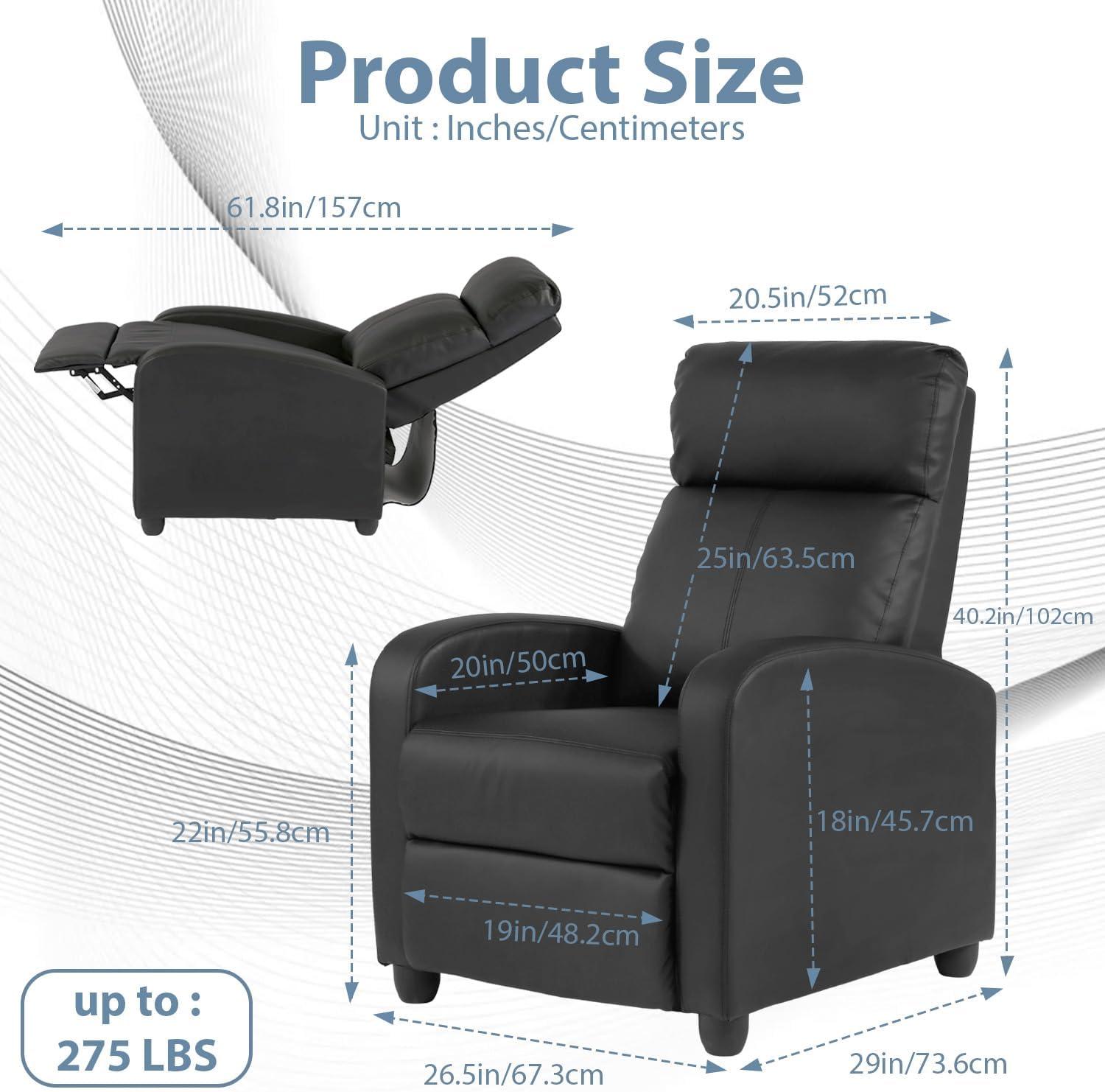 When setting up this recliner for an ideal home theater experience, we highly recommend placing it where you can fully utilize both the reclining back and footrest functions. These features allow you to effortlessly transition from an upright position for lively movie conversations to a semi-reclined state for ultimate relaxation. Its ergonomic high back and cushioned armrests provide excellent lumbar and neck support-key for those long binge-watching sessions. Additionally, the breathable padded surface ensures comfort even during extended use, keeping you cool and supported. assembly is straightforward, but we advise following the instructions closely to ensure safety and stability, especially since the chair supports up to 275 pounds.