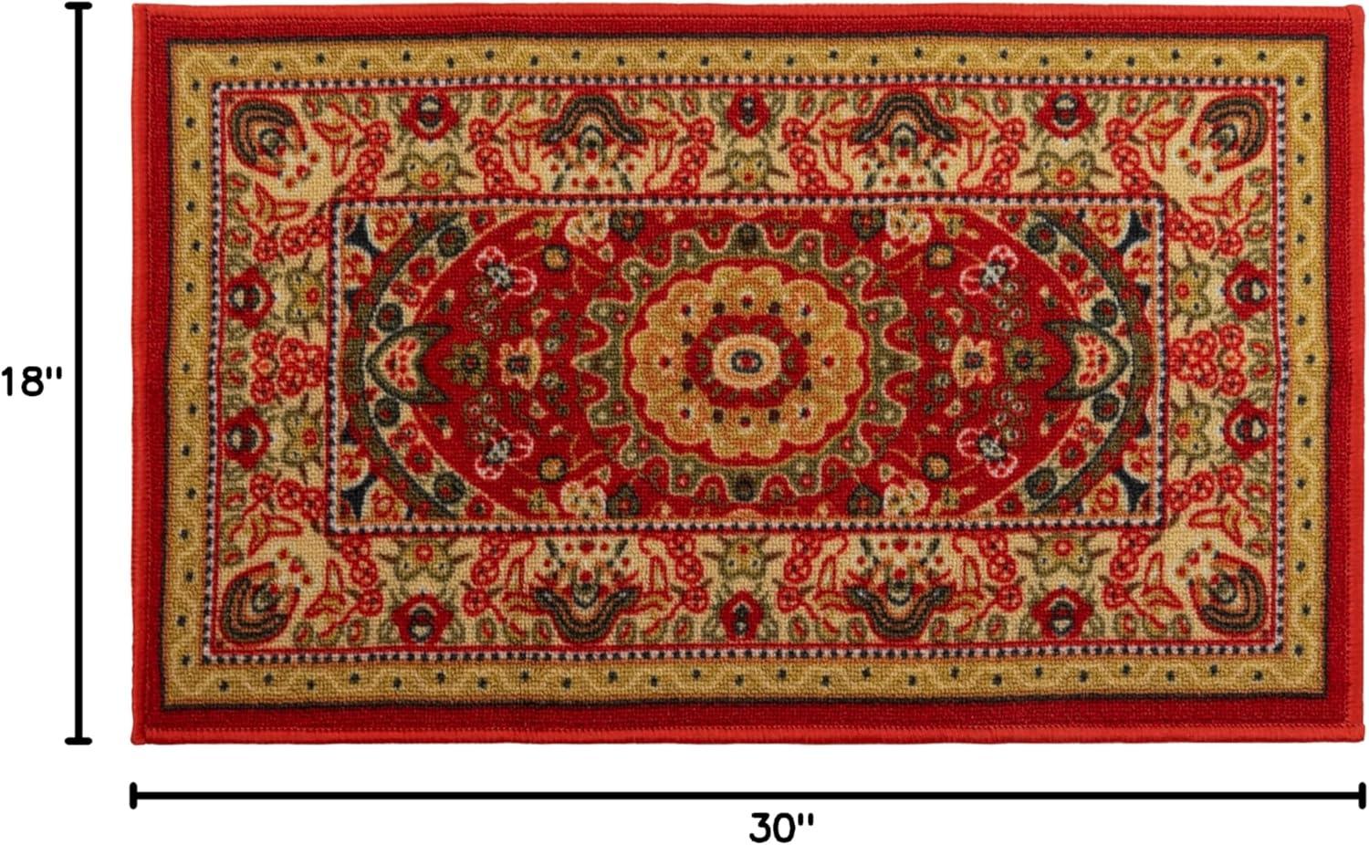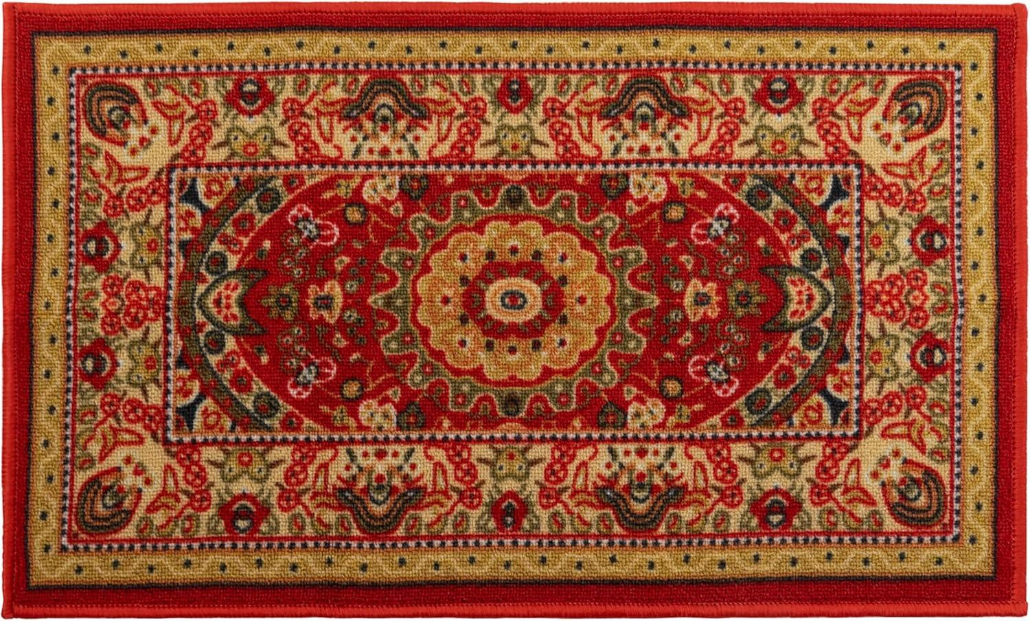 After spending ample time with this doormat, we appreciate its blend of style and functionality.The low 0.27-inch pile and thin profile make it an excellent choice for ensuring doors open smoothly without snagging, while the slip-resistant rubber backing keeps it firmly in place, even in busy entryways. Its vibrant red Persian medallion design provides a elegant, antique appeal that enhances the décor of any indoor space. Durability is impressive considering the nylon pile and stain-resistant surface, making the mat well-suited for high-traffic areas where dirt and moisture are constant concerns. cleaning is straightforward too, with simple vacuuming and spot treatments restoring its appearance efficiently.