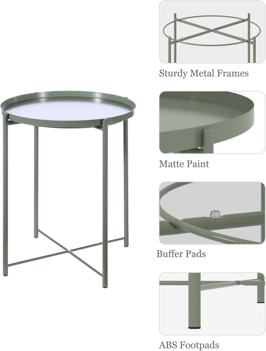 We really appreciate the sleek, modern aesthetic this metal end table brings to any space. Its minimalist round shape paired with the powder-coated, rust-proof metal finish gives it an elegant yet industrial feel that fits effortlessly into both contemporary and transitional interiors. The removable tray feature adds remarkable versatility; it serves as a functional accent piece next to sofas or beds,but also detaches easily to become a convenient serving tray for indoor entertaining or outdoor picnics. The sturdy construction supports up to 88 pounds, reassuring us that it can handle everything from a stack of books to a small potted plant or drinks without wobbling.
