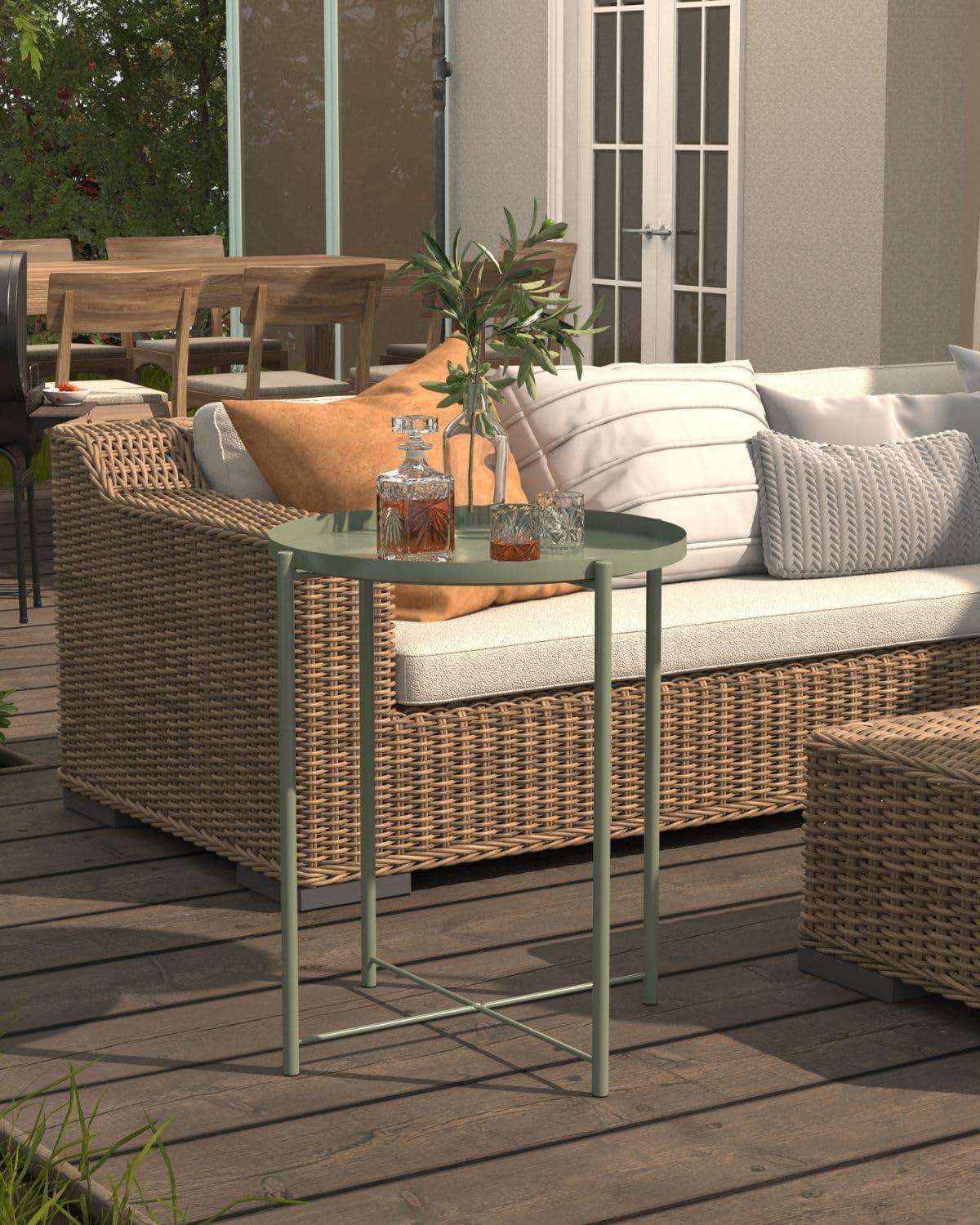 the Round Small Side Table in A-Green offers a perfect blend of modern style, versatility, and durability that suits almost any indoor or outdoor space. Whether you’re looking for a stylish accent piece beside your sofa, a convenient tray table for your balcony, or a sturdy yet lightweight companion for your office or garden, this metal end table adapts effortlessly to your needs. With its easy assembly,rust-proof build,and thoughtful details like adjustable non-slip pads,it proves to be as practical as it is indeed appealing. We appreciate how its removable tray elevates functionality, making serving or organizing simple wherever you place it.