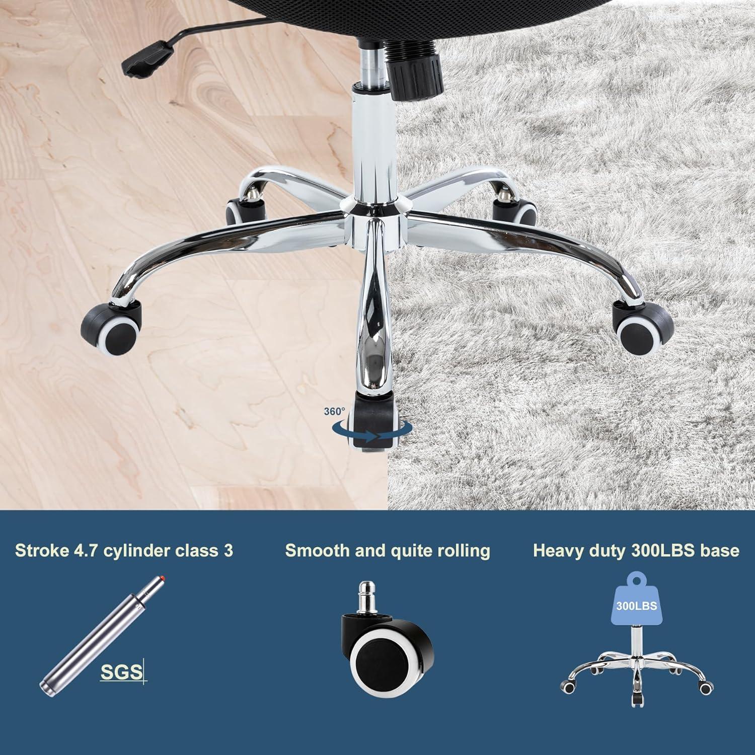 Mobility is another strong point here; the chair spins a full 360 degrees and glides quietly on black silent casters that did not scratch our floor and made moving around easy without any disruption. We appreciated the sturdy base,built to support up to 250 lbs,though we took care to ensure it wasn’t overloaded to maintain stability and longevity.Before securing all screws tightly, we followed the advice to adjust stability carefully, which added to our peace of mind. Below is a quick glance at the key features that stood out during our initial use: