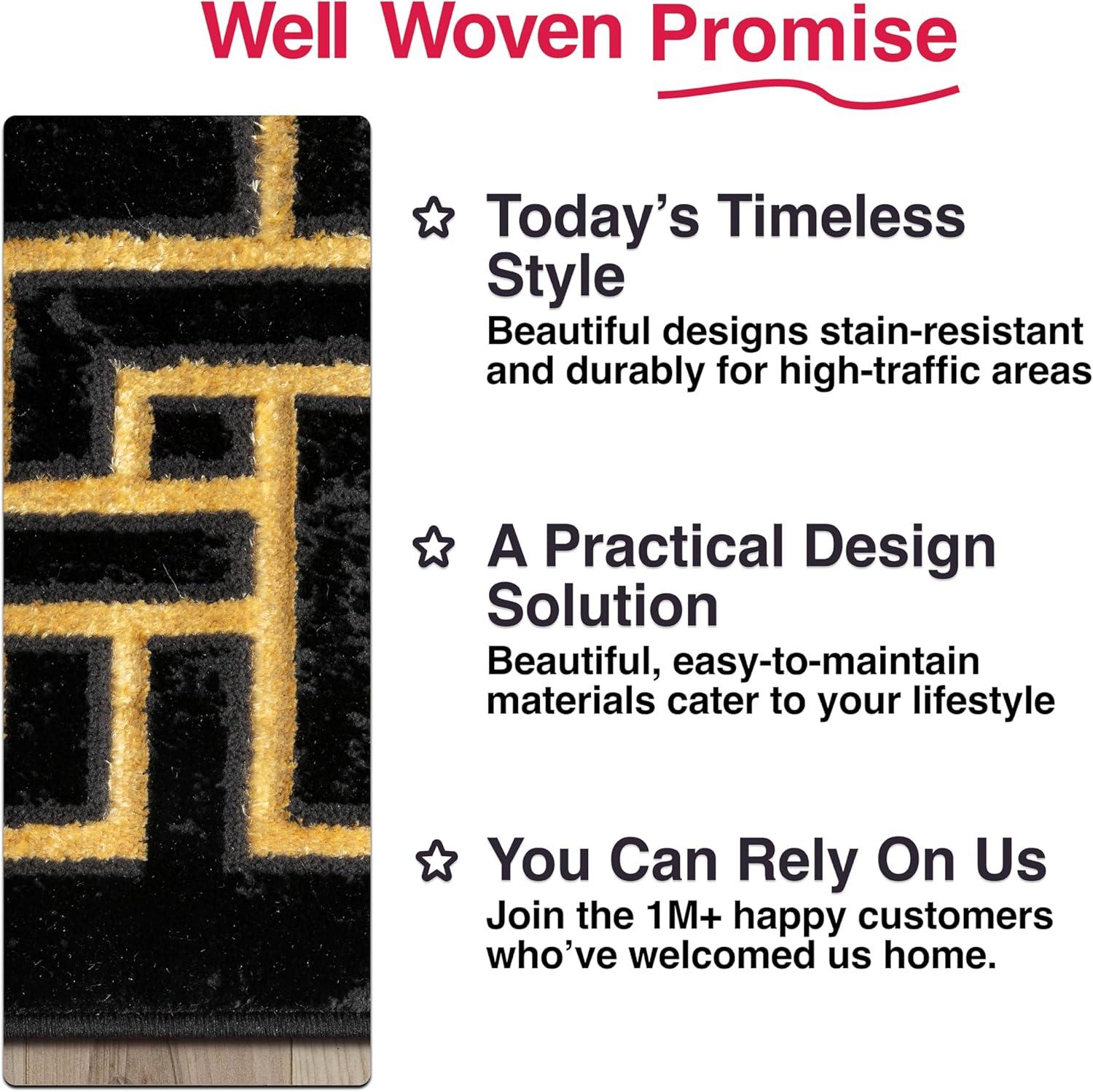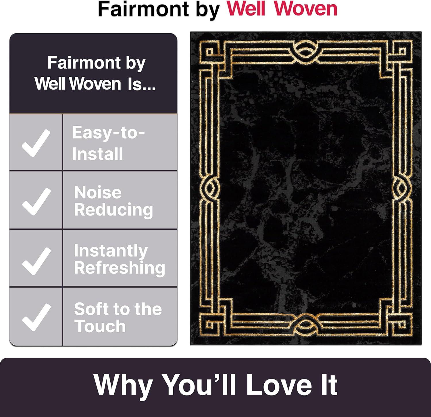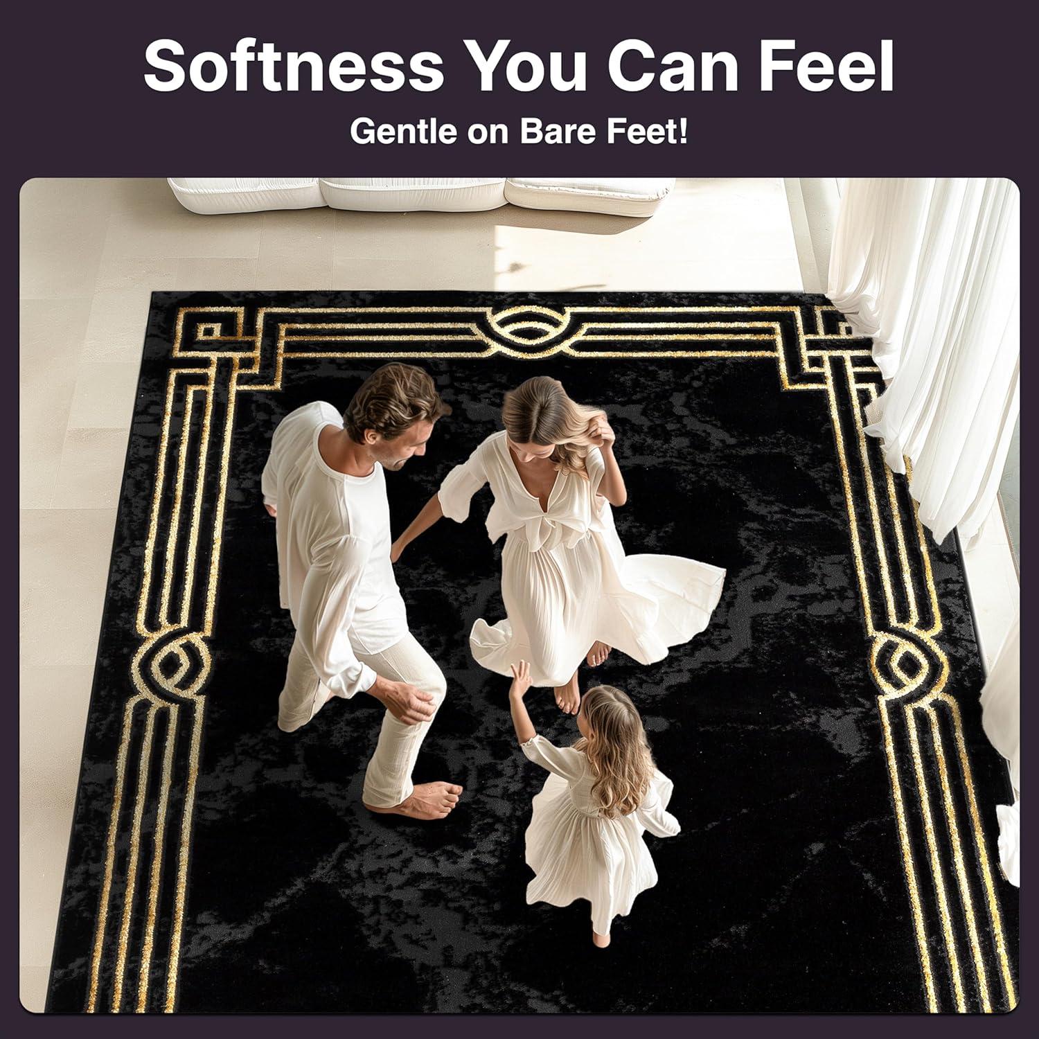 After spending considerable time assessing this masterpiece, we appreciate how it marries aesthetic appeal with practical features seamlessly. The sleek black base paired with a shimmering gold marble border adds a luxurious, art deco-inspired charm to various rooms-from living spaces to dining areas and bedrooms. Its medium pile offers a soft, comfortable texture underfoot while lasting through everyday wear thanks to a shed-resistant, moisture-repellent build.This balance of beauty and durability truly makes it stand out as a functional piece of art that fits perfectly under larger furniture like king-size beds or marble dining tables.