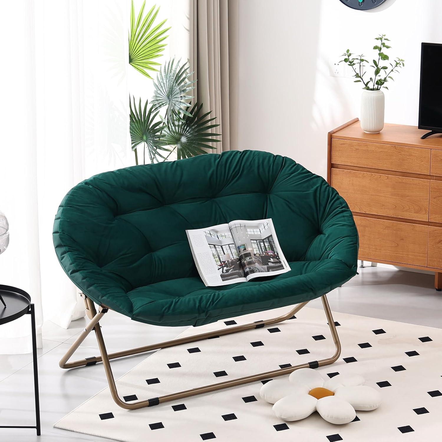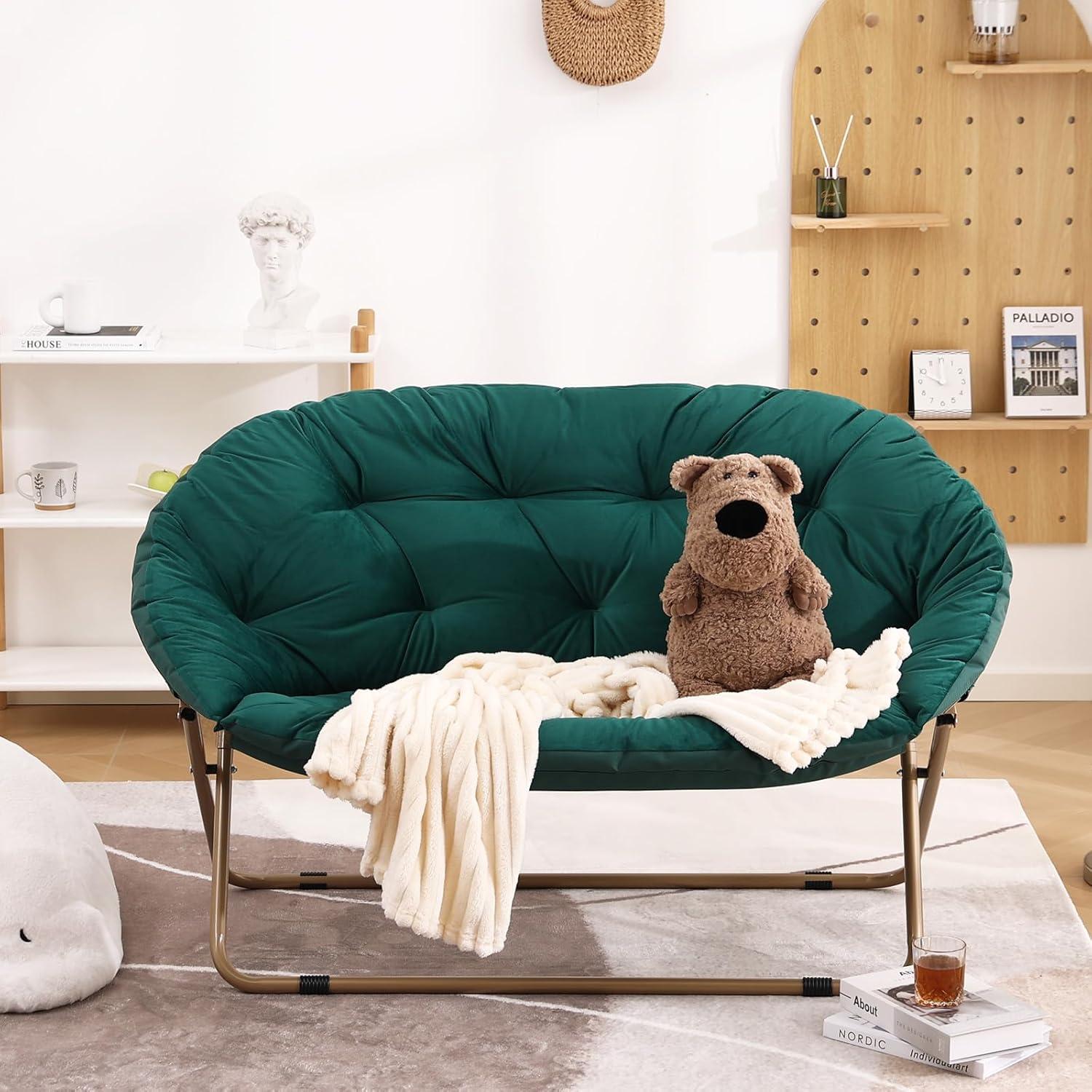 When it comes to relaxing after a busy day, the plush faux fur finish promptly catches our attention with its irresistibly soft texture and inviting warmth. Sitting in this double saucer chair loveseat feels like sinking into a cozy cloud, thanks to the high-quality PP Cotton filling that offers gentle yet firm support. The ergonomic backrest has been thoughtfully designed to adapt to different body types, embracing us comfortably whether we’re curling up with a book or chatting with a friend. The rich dark green hue adds a sophisticated touch, perfectly blending comfort with modern aesthetics.