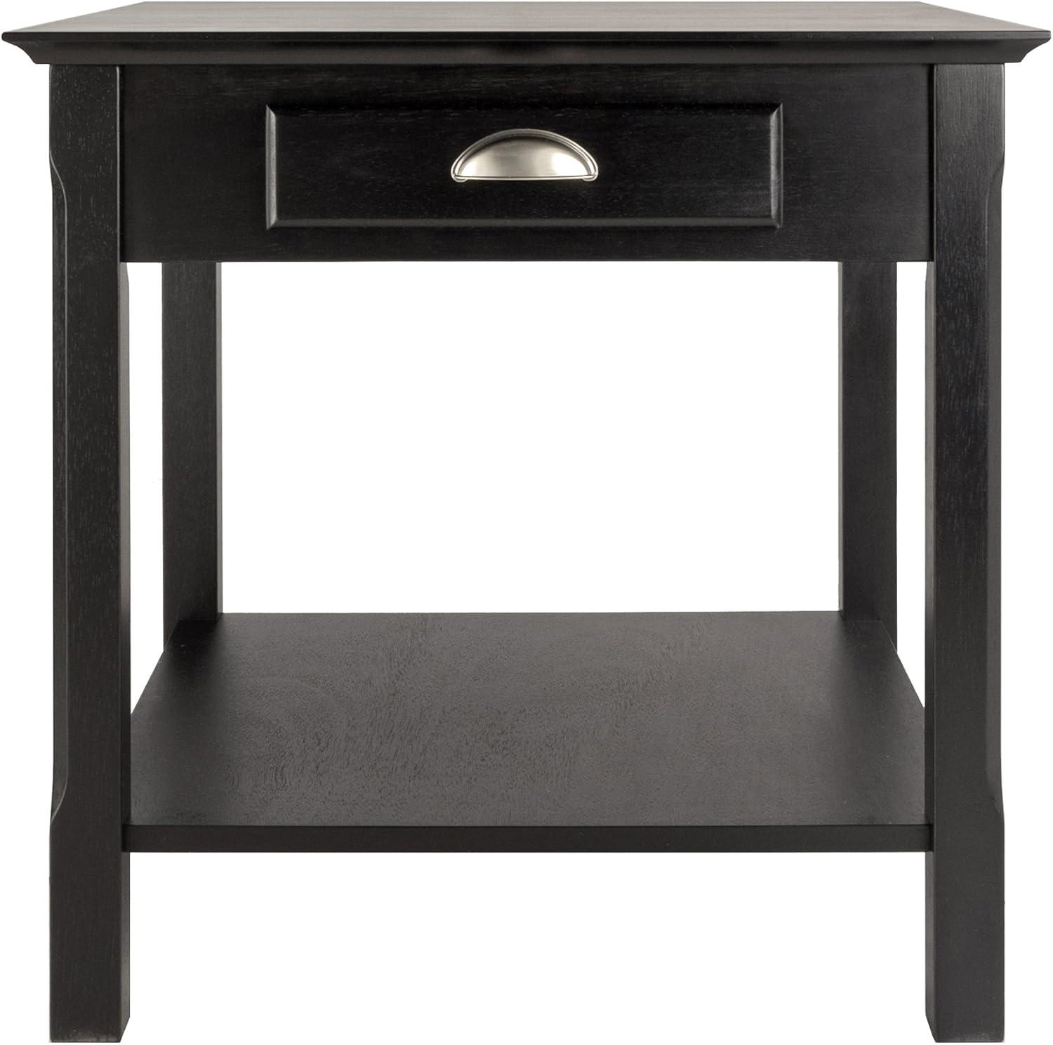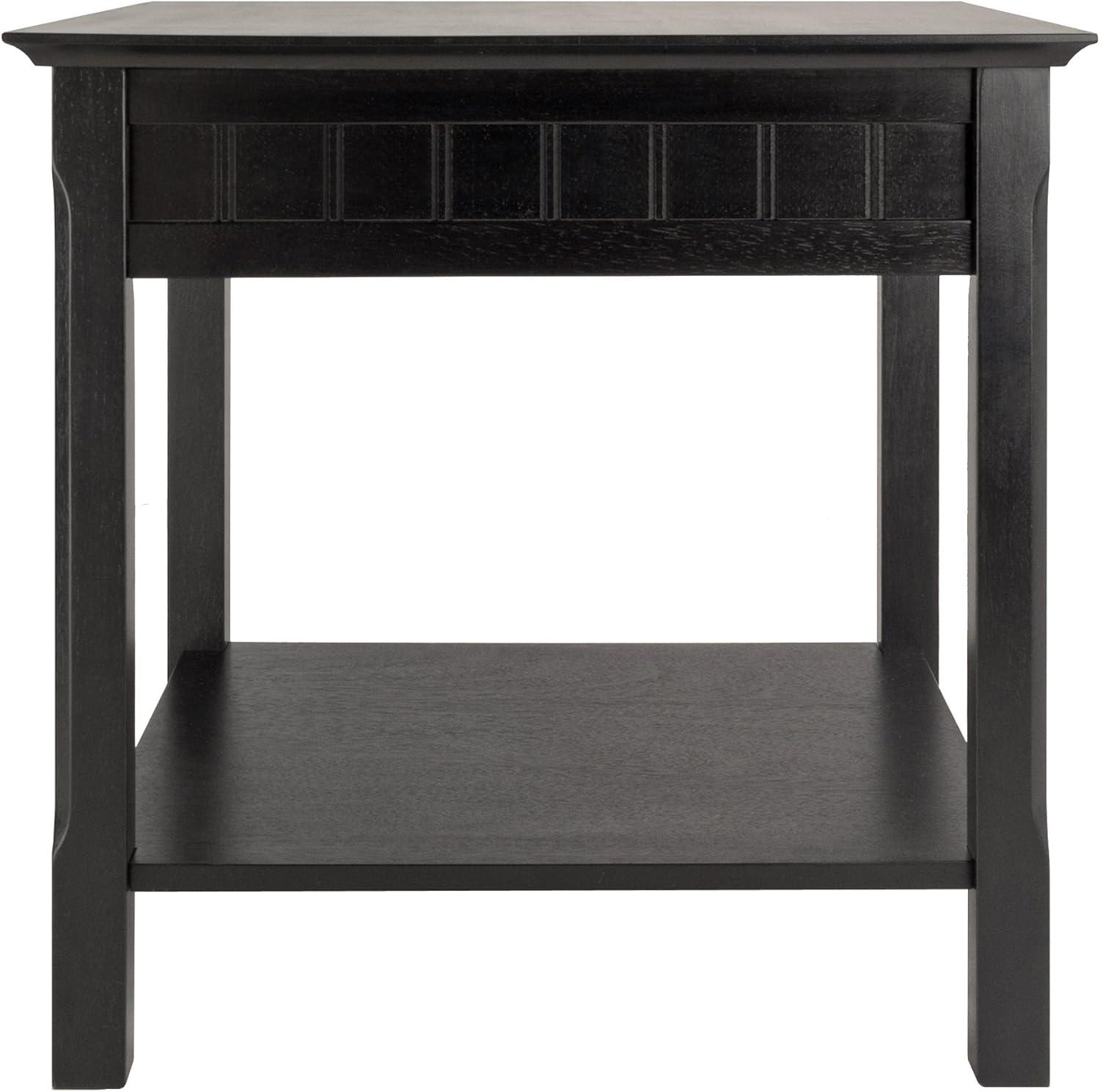 Blending rustic charm with modern design elements, this occasional table immediately stood out with its sturdy silhouette and sleek black finish.The roomy tabletop, framed by a bevel-edged square shape, offers ample space for décor or daily essentials, while the wide apron adds visual interest with plank-inspired paneling. We appreciated the thoughtful inclusion of a storage drawer featuring a half-moon brushed chrome pull, perfect for keeping smaller items neatly tucked away. The open shelf below provides additional display or storage options,ideal for books,collectibles,or a small plant to brighten the space. Crafted from solid beechwood, the table exudes quality and timeless appeal that can complement a variety of interior styles.