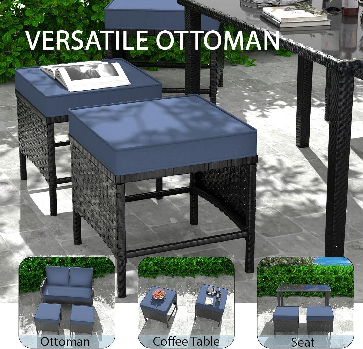 You start to⁢ notice the ⁣7-Piece Patio Furniture Set, Outdoor couch with Dining​ Table​ & Ottomans, PE Rattan Sofa Set with Cushions for Deck, Yard, Poolside (Blue) less as a singular purchase and more as something that quietly stakes out a place on​ the⁢ patio, shaping how‍ the space is used. over time‍ the cushions develop familiar⁣ giving in ‌the⁤ spots you sit most,the ottomans find their roles,and‍ the ‌rattan shows the small scuffs and light fading that come with⁣ ordinary weather and hands moving ⁢across it.In daily ​routines it becomes a backdrop‌ to coffee, a waystation for a damp towel, and an unremarked companion to evening chatter, folding into regular household rhythms. It rests.