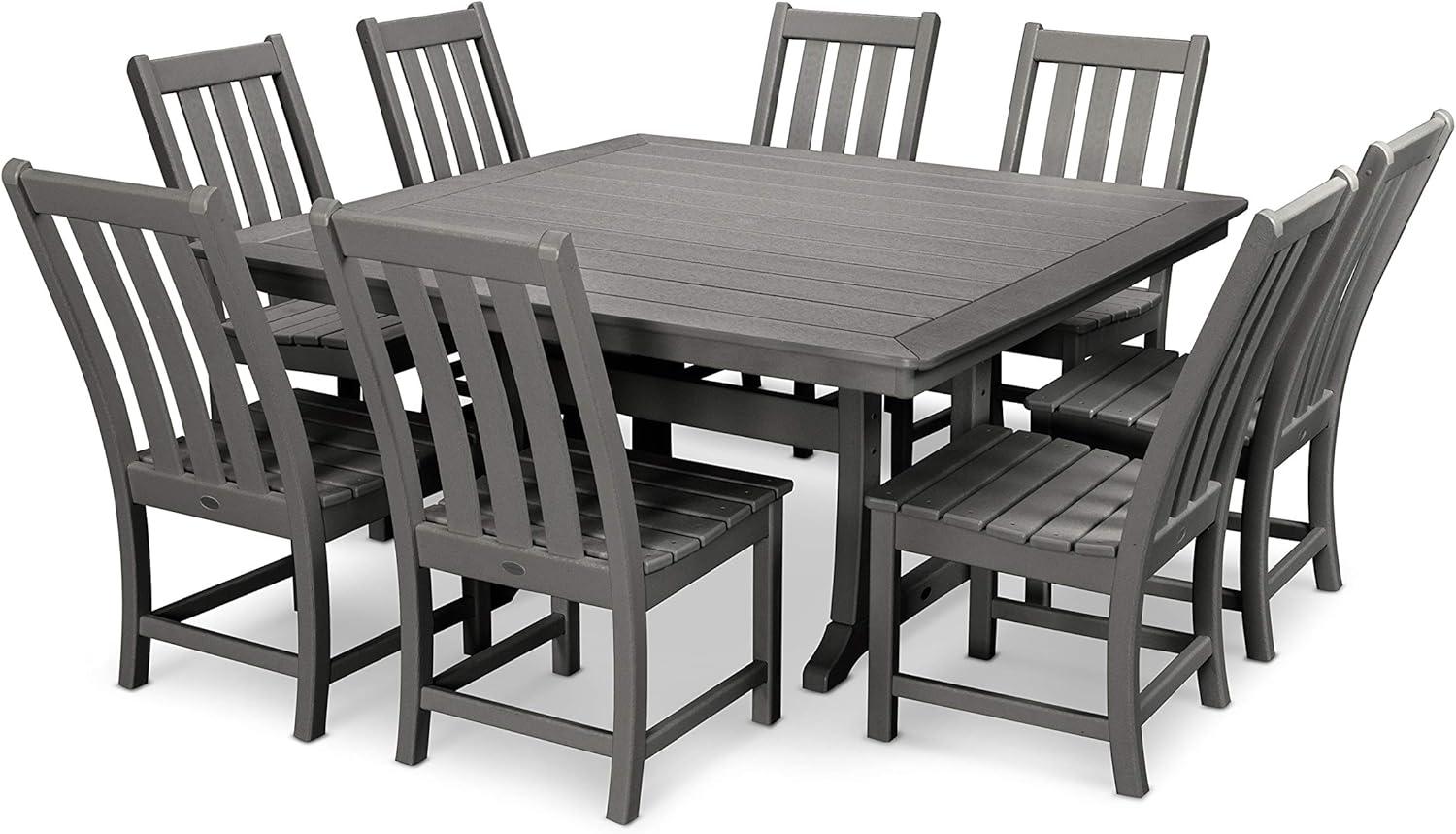A first look at the Polywood Heavy Duty HDPE Dining Set Vineyard nine piece dinette set in slate grey