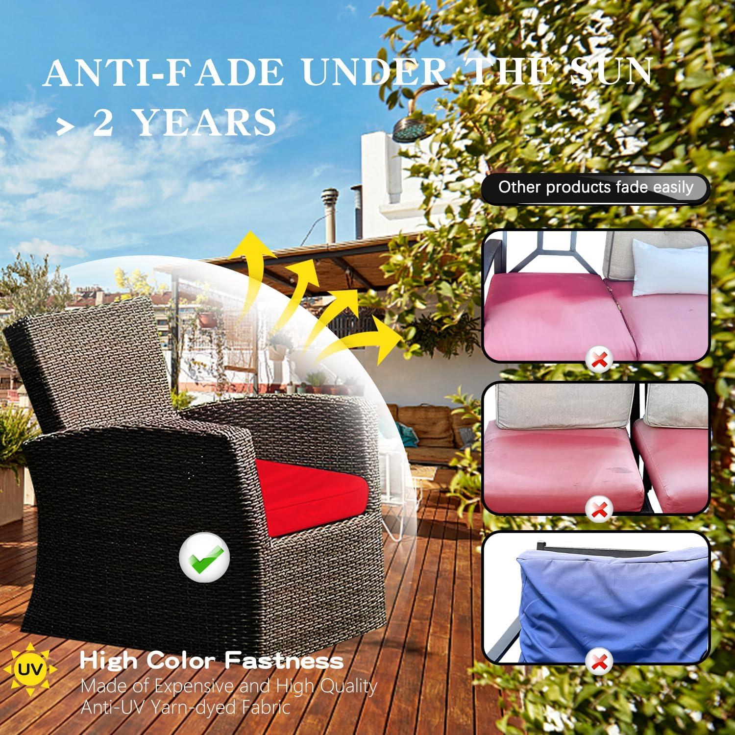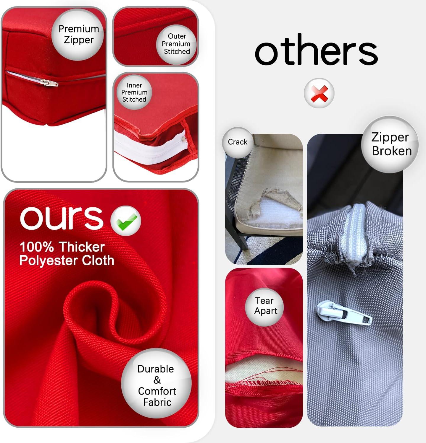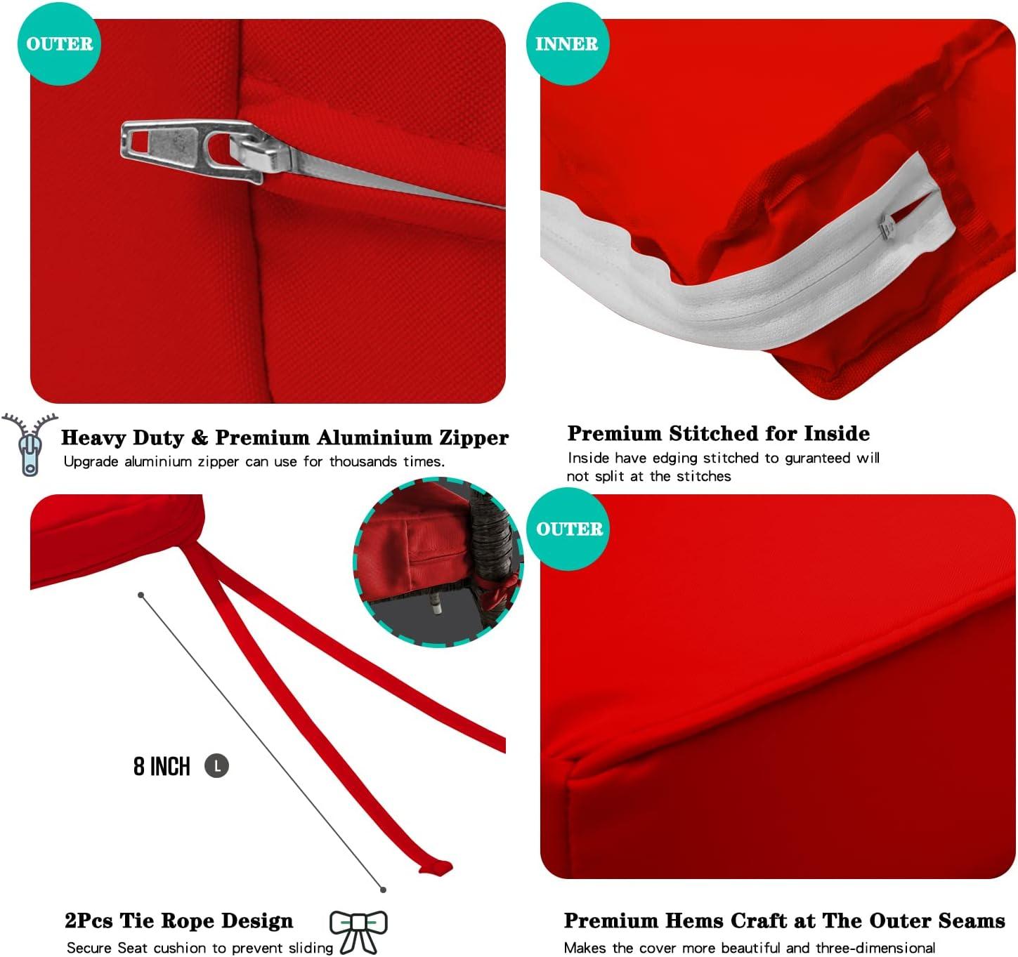We found the fabric quality of these replacement covers to be impressively durable and comfortable against the skin. The material feels thick enough to withstand regular use while still maintaining a soft texture that enhances seating comfort. The vibrant red color remains rich even after multiple washes, thanks to the careful craftsmanship and quality stitching.The covers fit snugly around cushions, preventing any slipping or bunching, which helps maintain a neat, polished look for our patio setup.